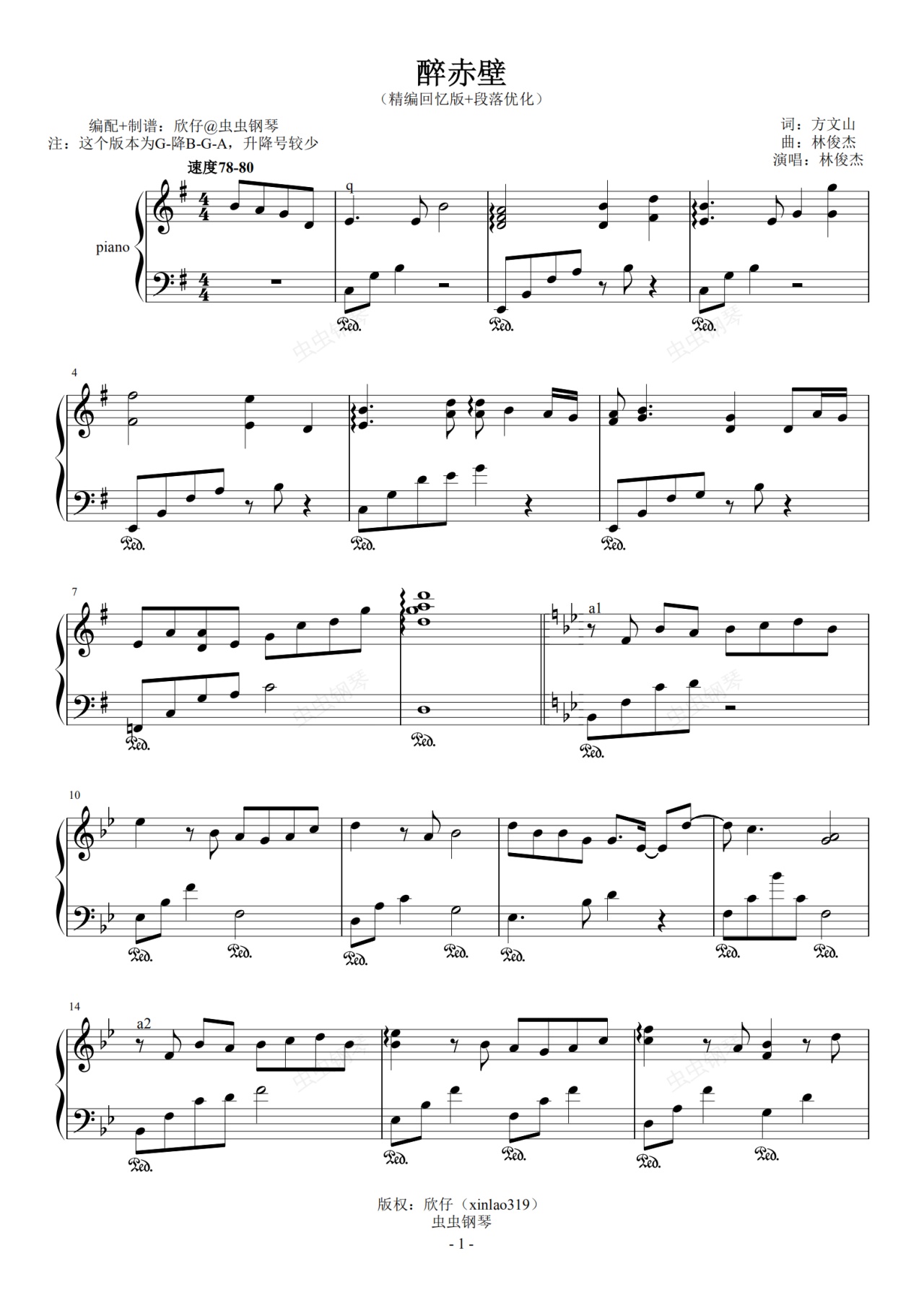 钢琴谱:林俊杰-G《醉赤壁》(精编回忆版+段落优化)