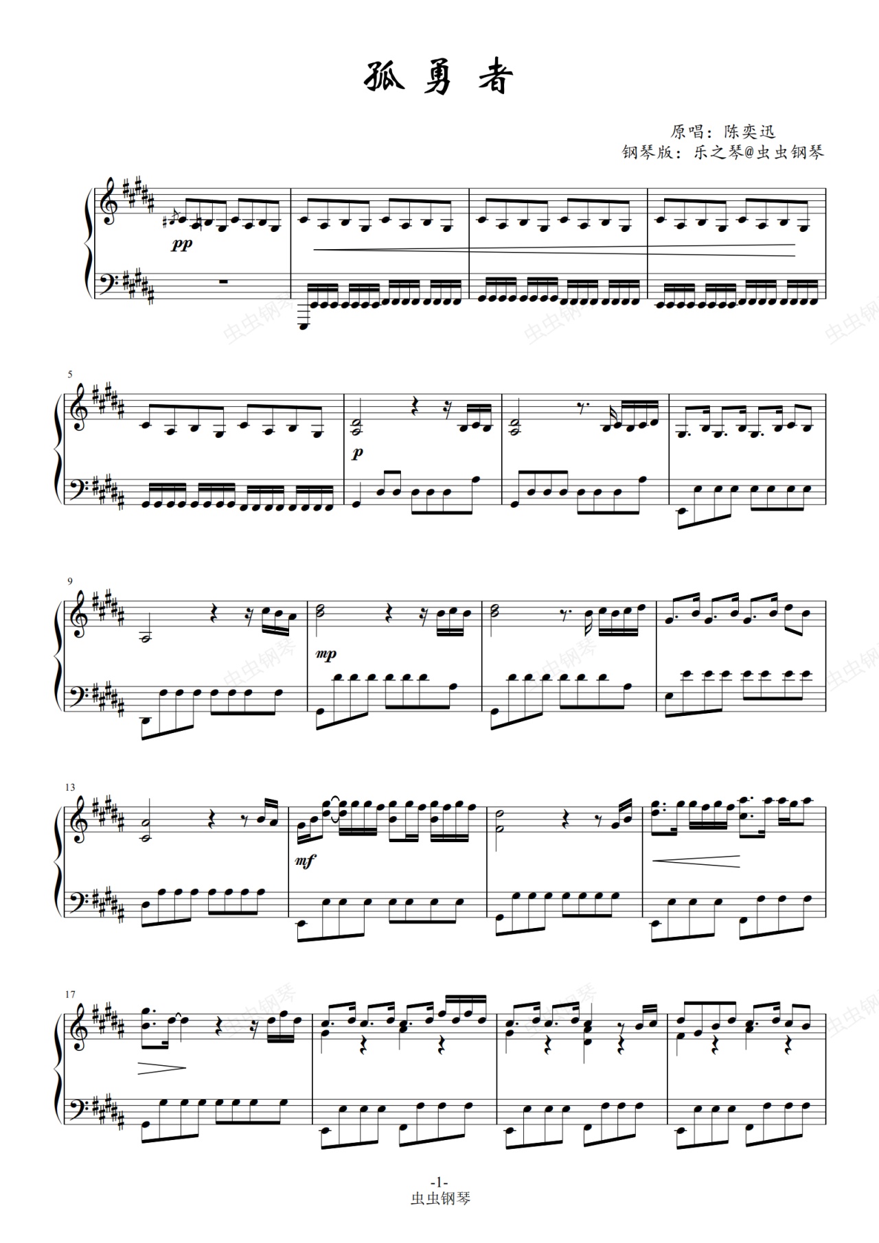 钢琴谱:孤勇者-乐之琴钢琴演奏版