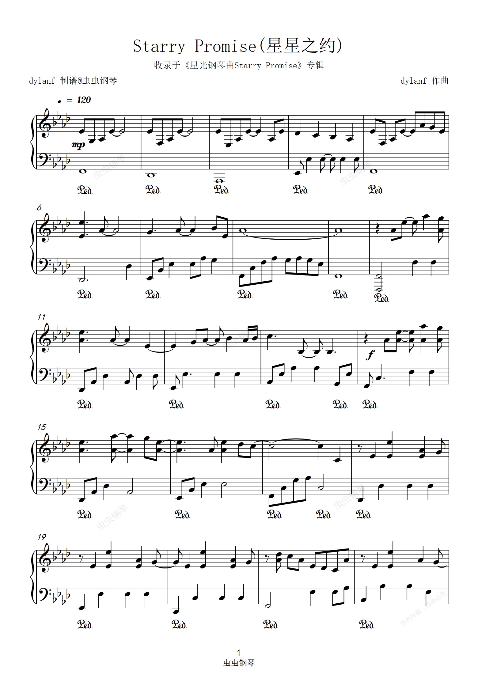 钢琴谱:「星光钢琴曲」Starry Promise(星星之约)dylanf原稿