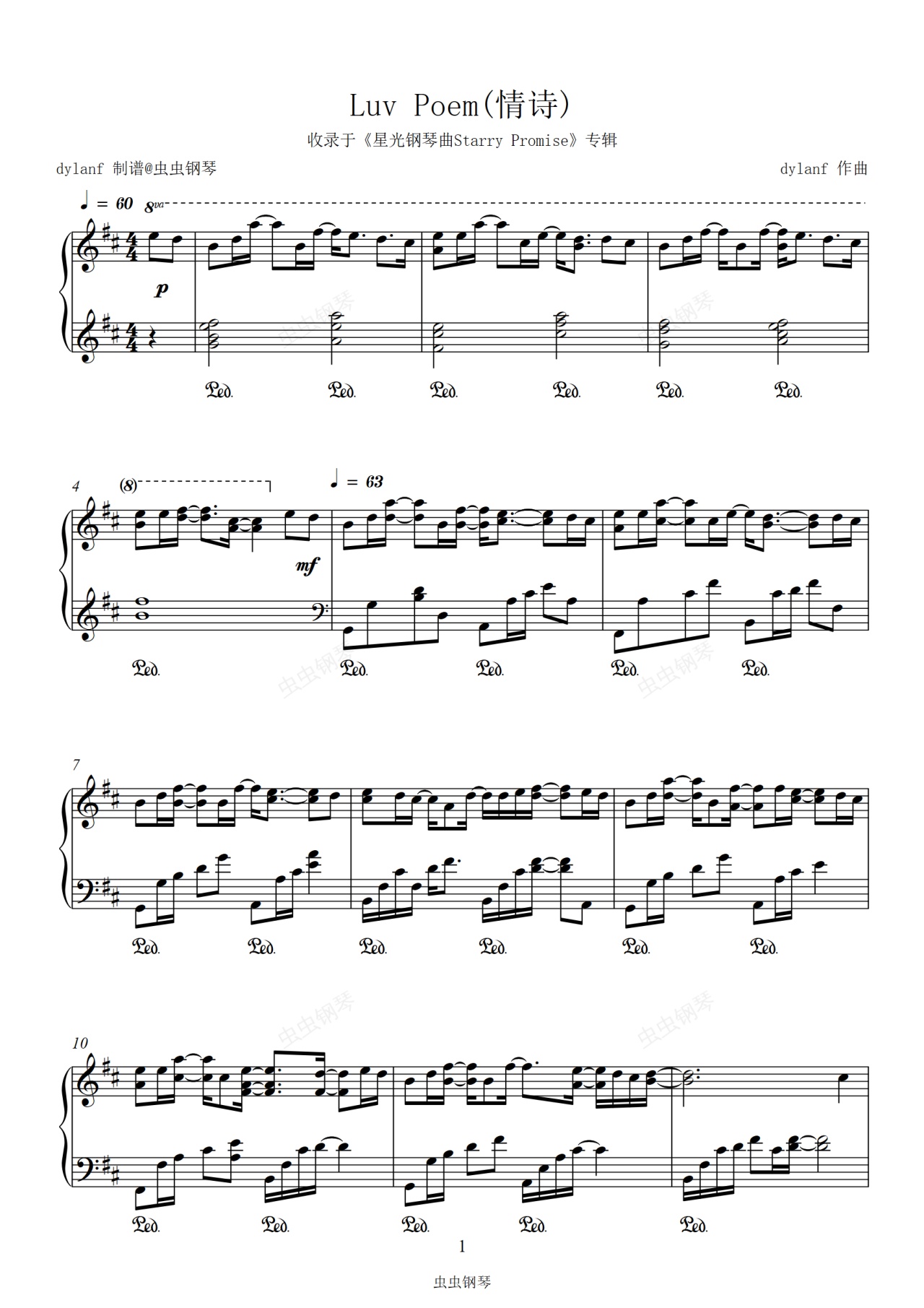 钢琴谱:「星光钢琴曲」Luv Poem(情诗)dylanf原稿