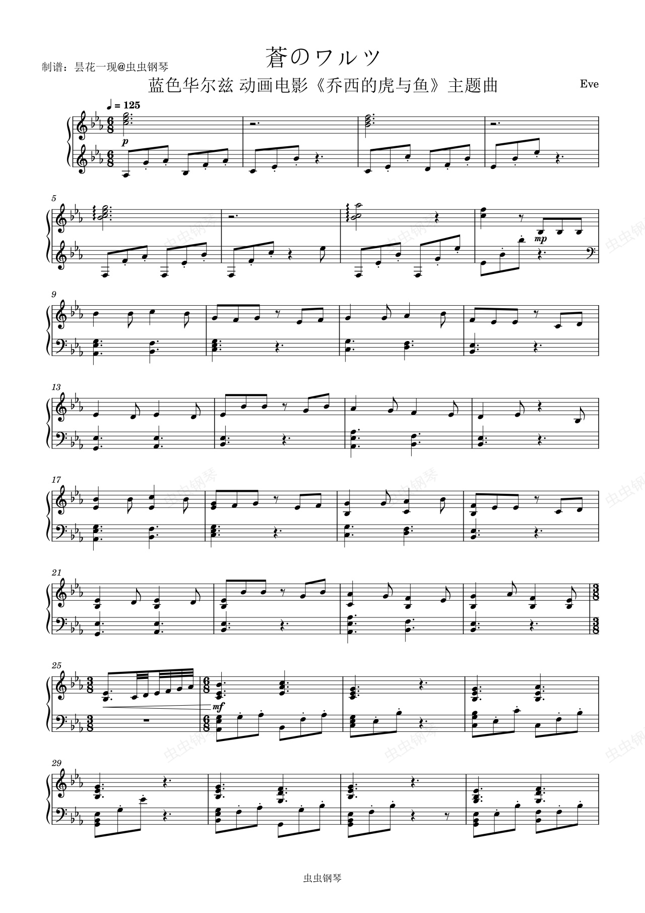 钢琴谱:蒼のワルツ (Ao no Waltz)《乔西的虎与鱼》主题曲