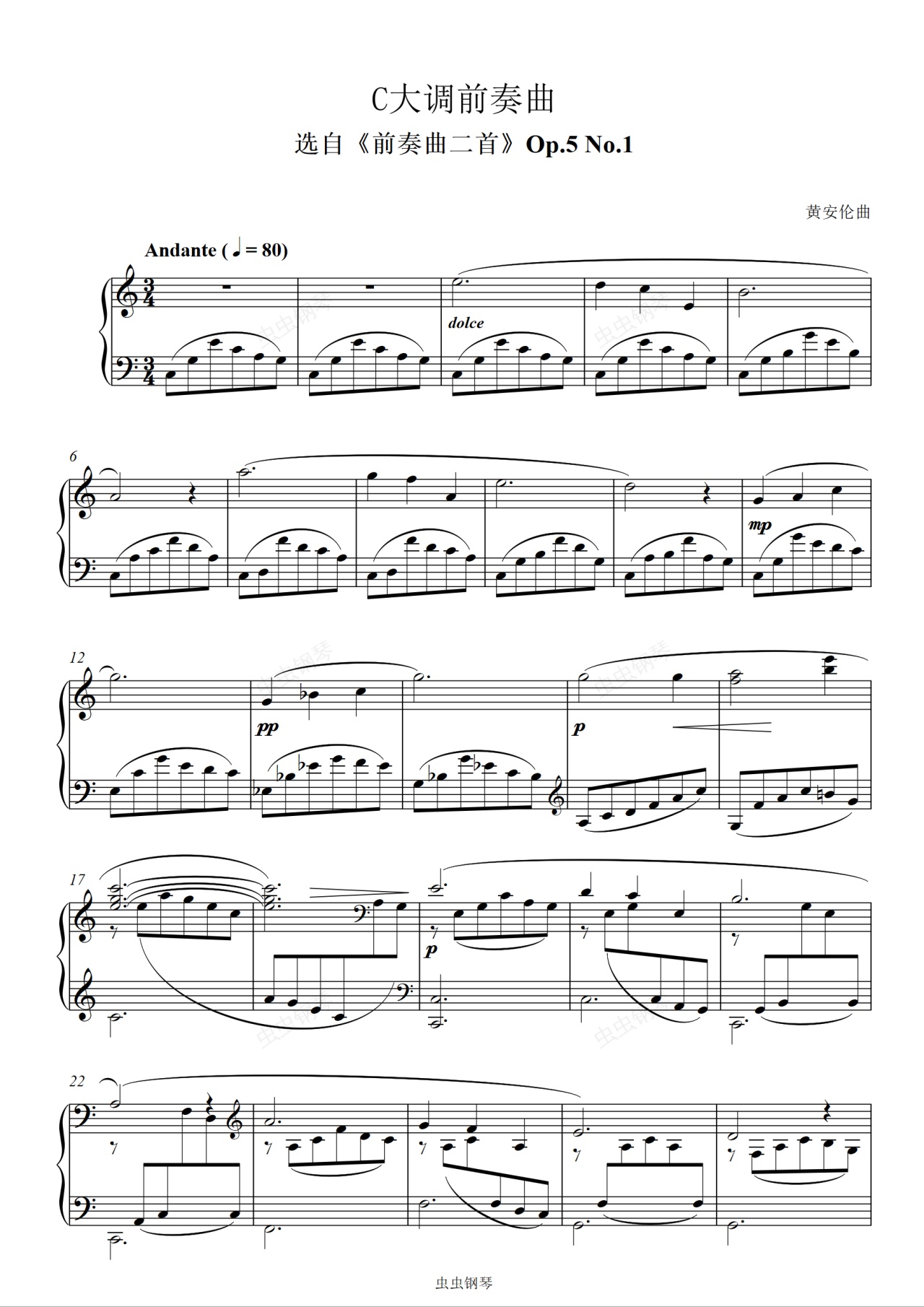 钢琴谱:10级-小型乐曲-C大调前奏曲选自《前奏曲二首》Op.5 No.1