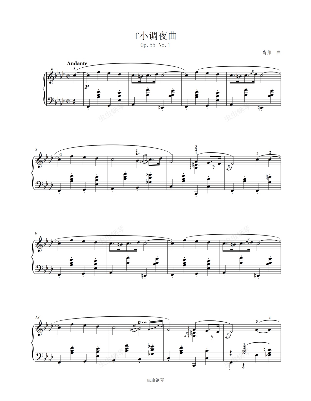 钢琴谱:10级-小型乐曲-f小调夜曲Op.55 No.1