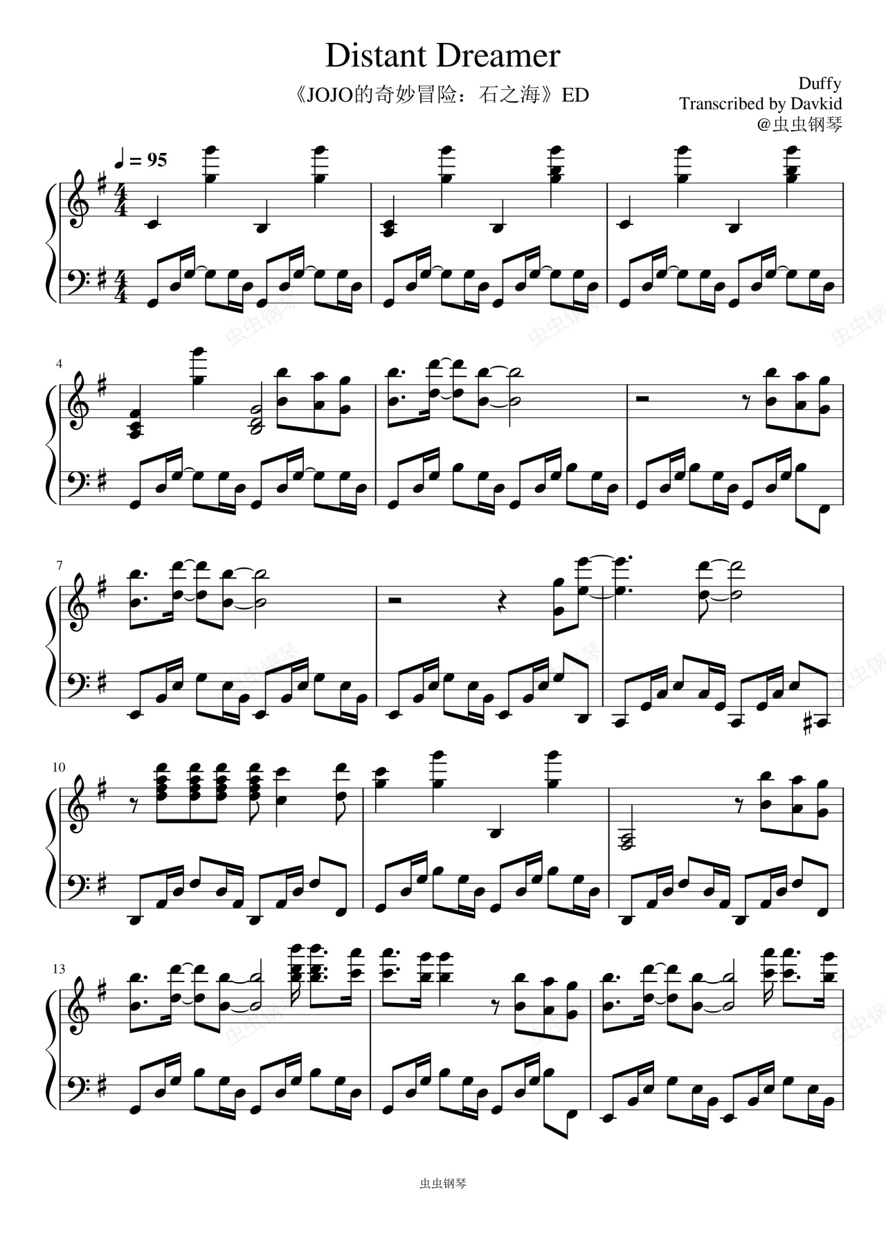 钢琴谱:《Distant Dreamer》-《JOJO的奇妙冒险:石之海》ED