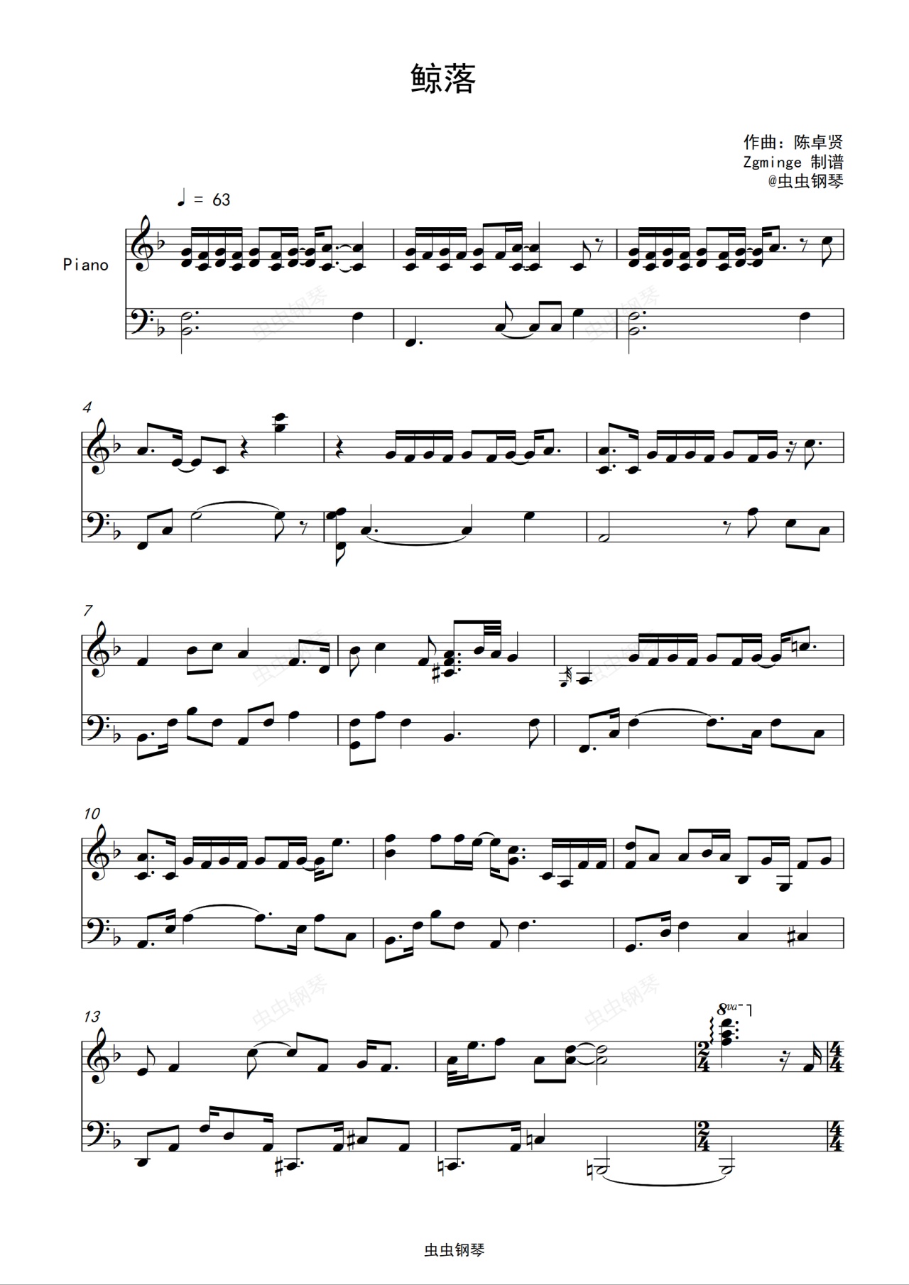 钢琴谱:鲸落 弹奏版