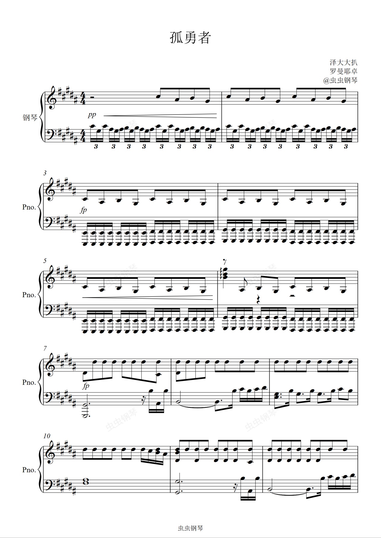 钢琴谱:孤勇者【O叔独奏版】罗曼耶卓 泽大大扒
