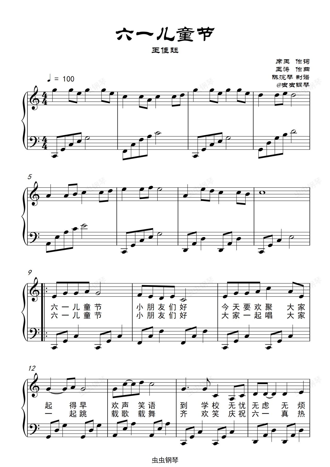 钢琴谱:六一儿童节钢琴谱_王佳珏_C调钢琴五线谱