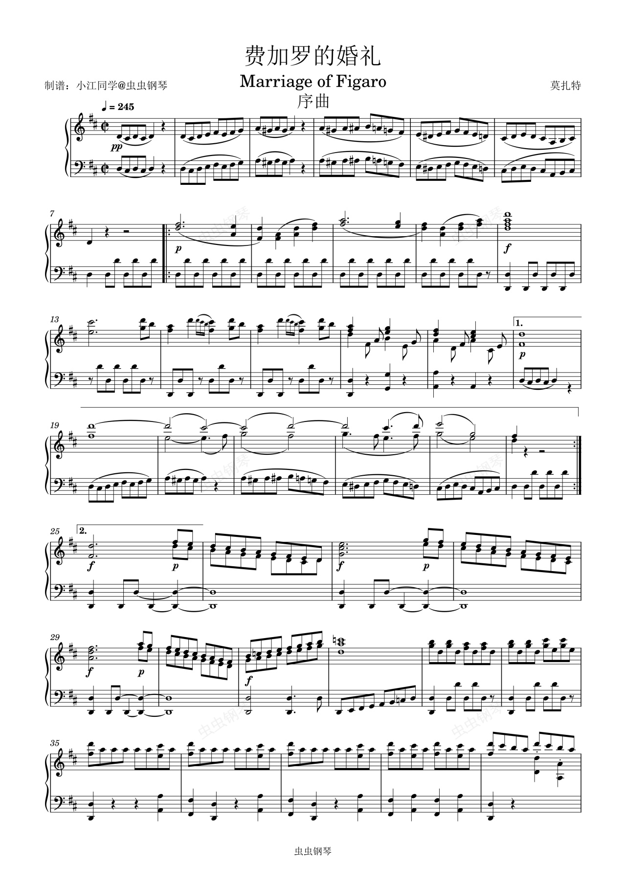 钢琴谱:费加罗的婚礼 序曲(独奏版)