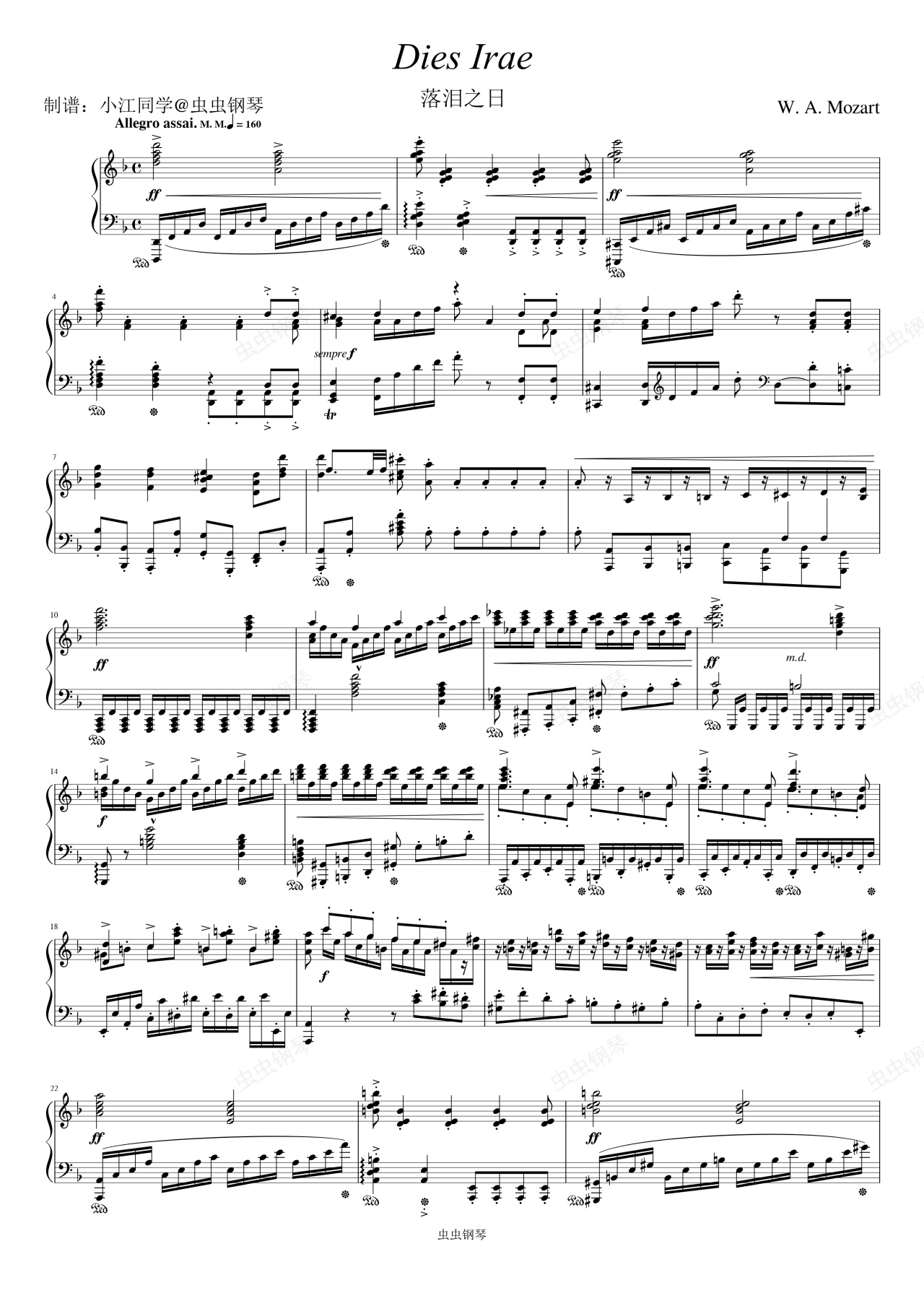 钢琴谱:Dies Irae(落泪之日)安魂曲