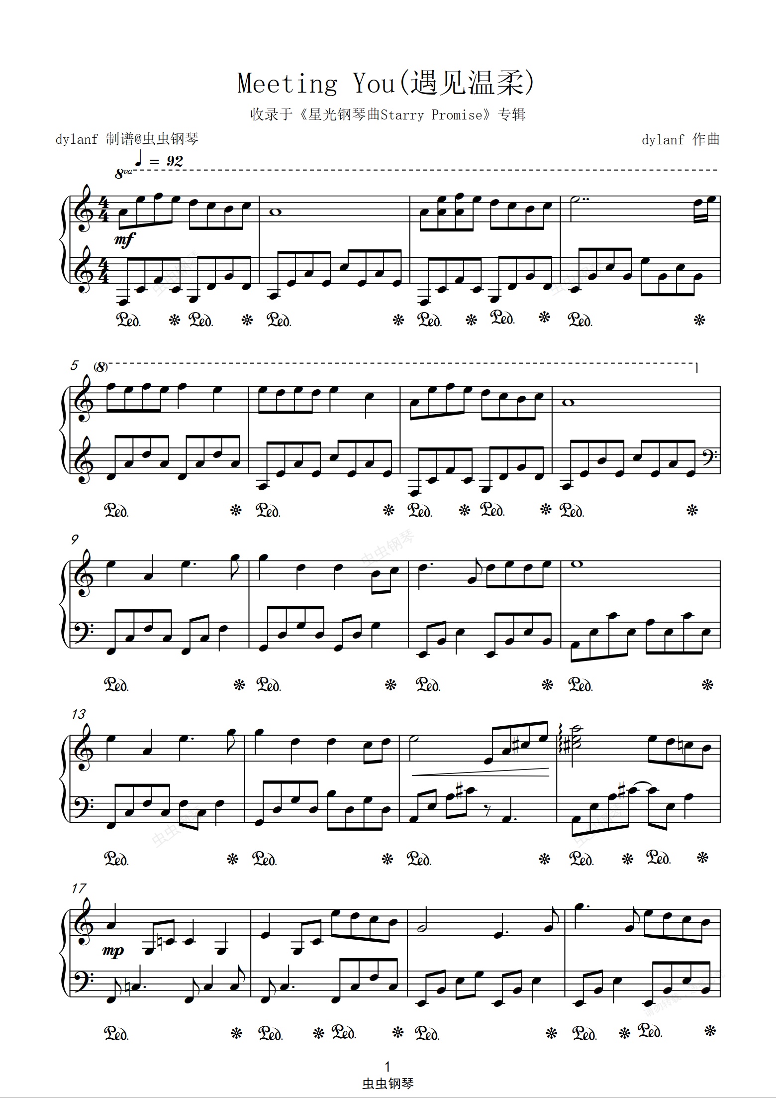 钢琴谱:「星光钢琴曲」Meeting You(遇见温柔)dylanf原稿