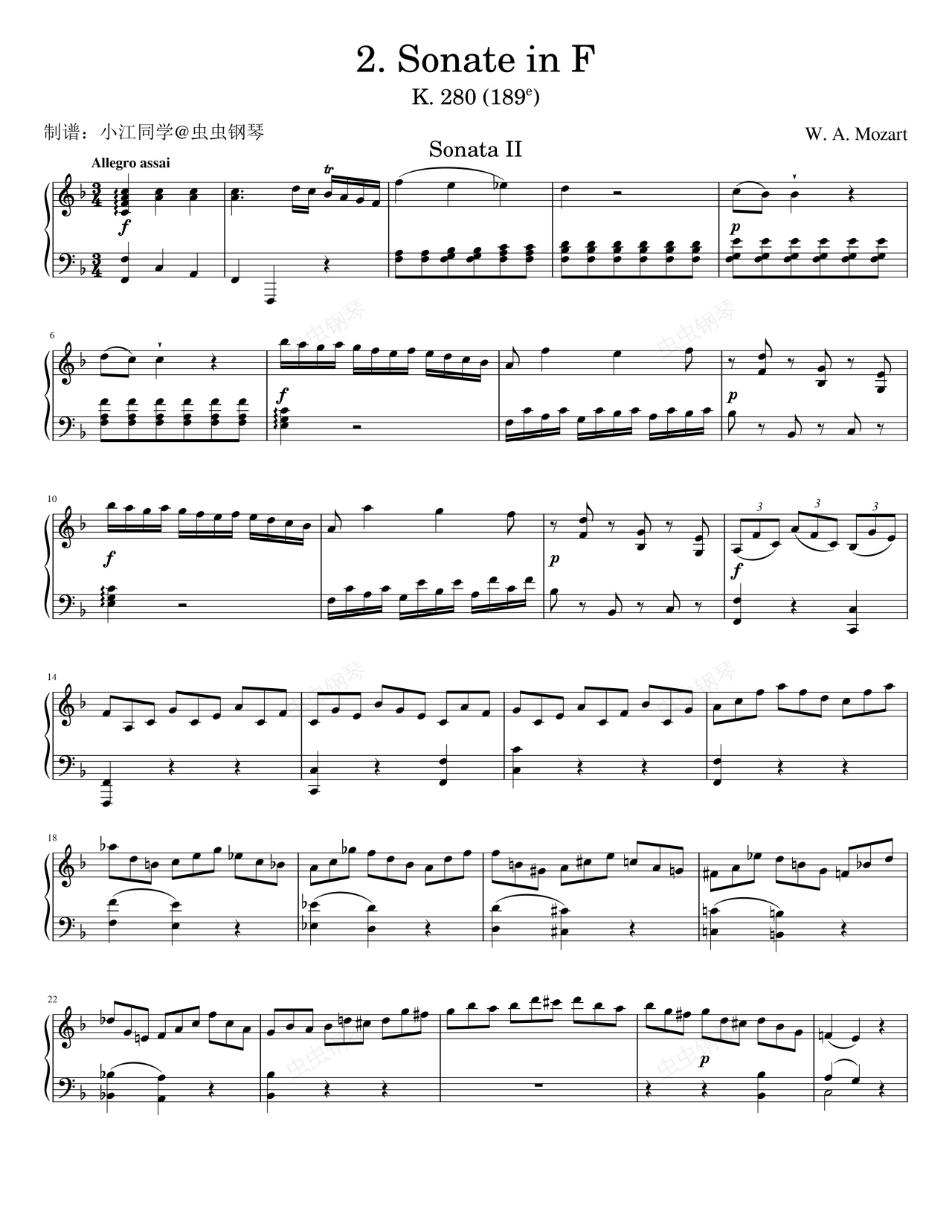 钢琴谱:K.280 莫扎特第二奏鸣曲
