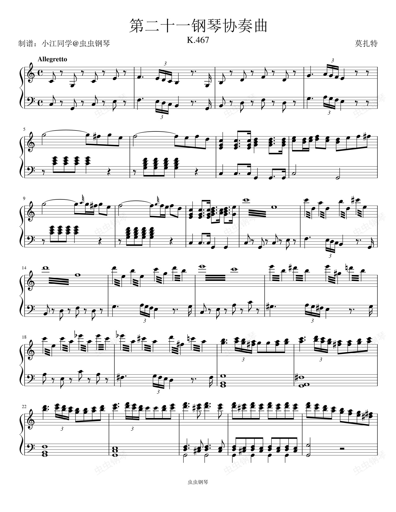 钢琴谱:第二十一钢琴协奏曲 K.467