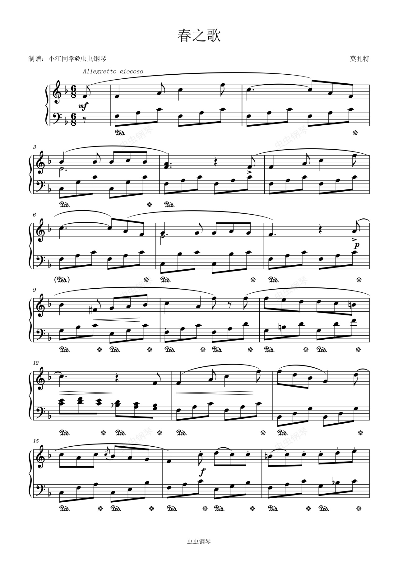 钢琴谱:春之歌 莫扎特