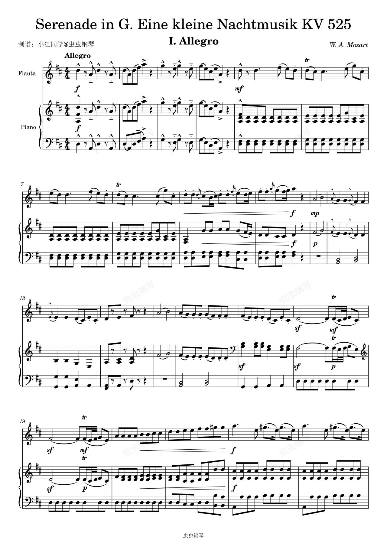 钢琴谱:弦乐小夜曲 合奏钢琴 KV 525