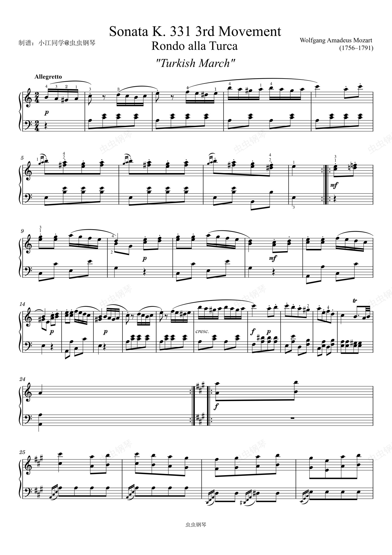 钢琴谱:土耳其进行曲 带指法