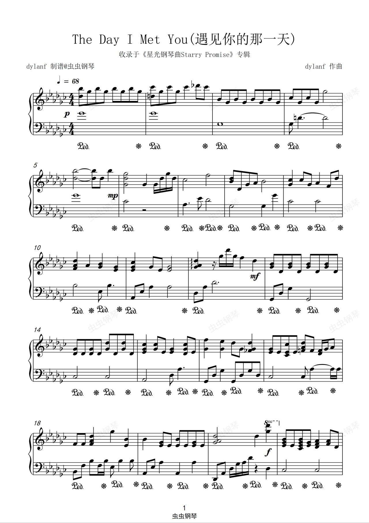 钢琴谱:「星光钢琴曲」The Day I Met You(遇见你的那一天)dylanf原稿