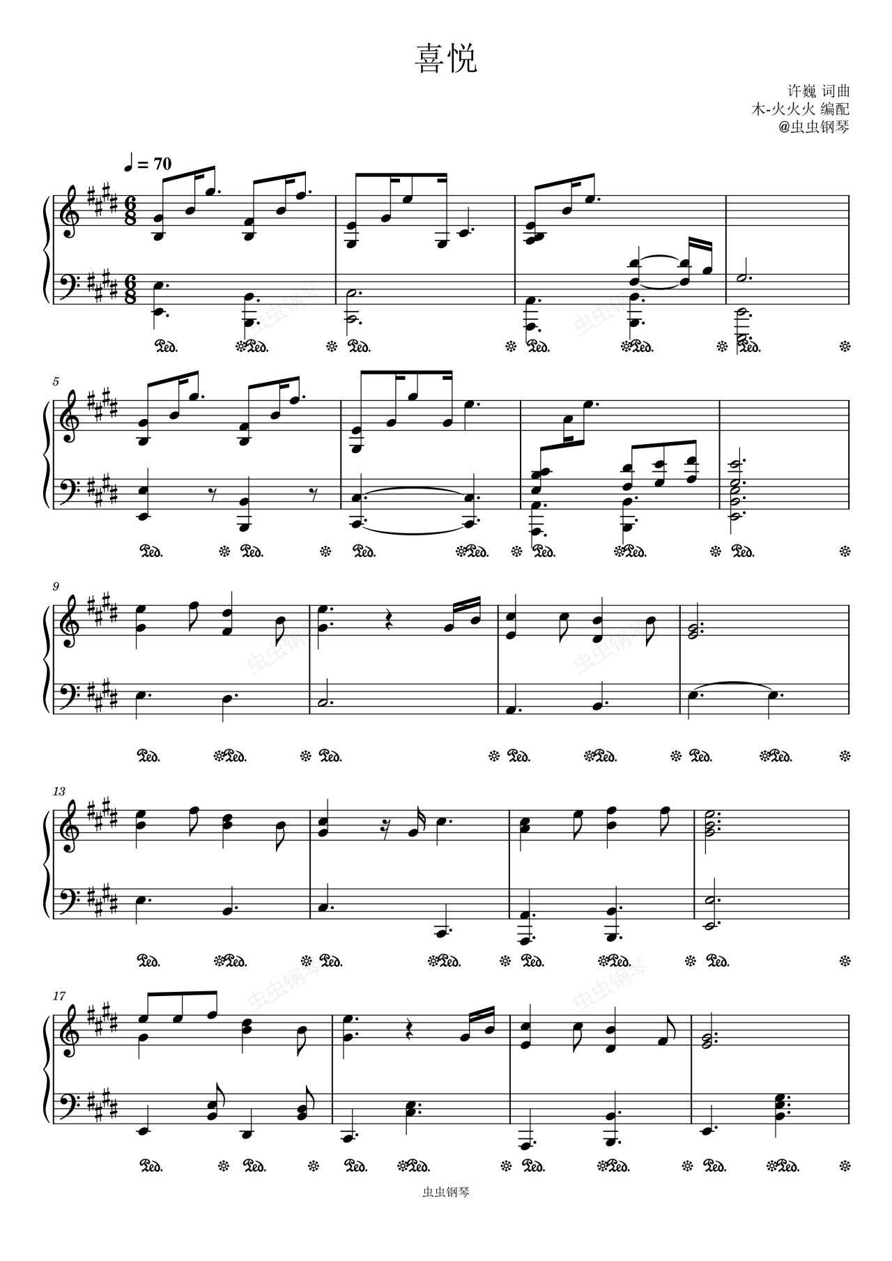 钢琴谱:原声扒谱《喜悦》许巍-E调