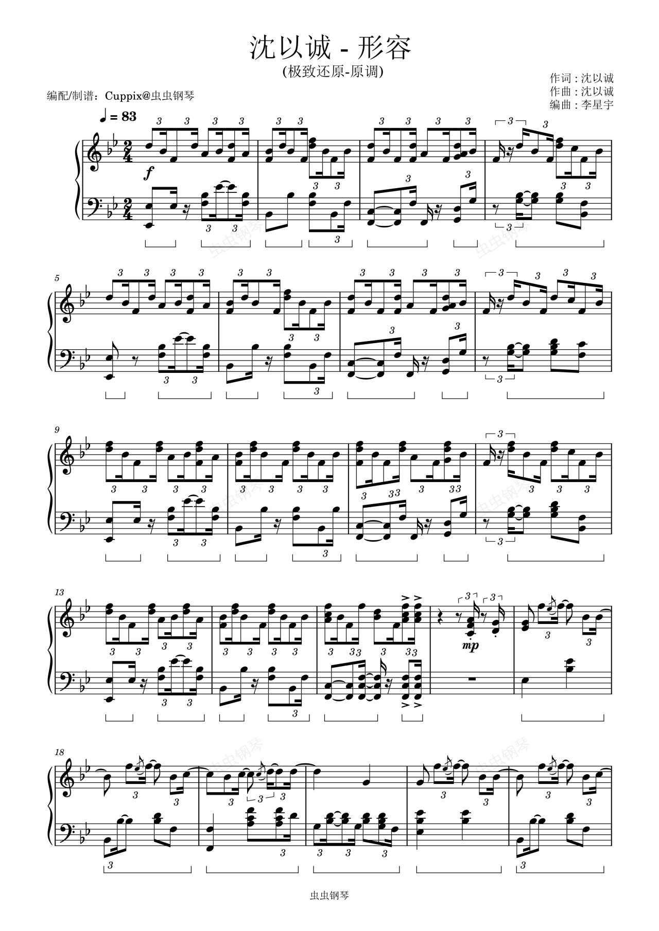 钢琴谱:沈以诚《形容》Cuppix编配 - 极致还原