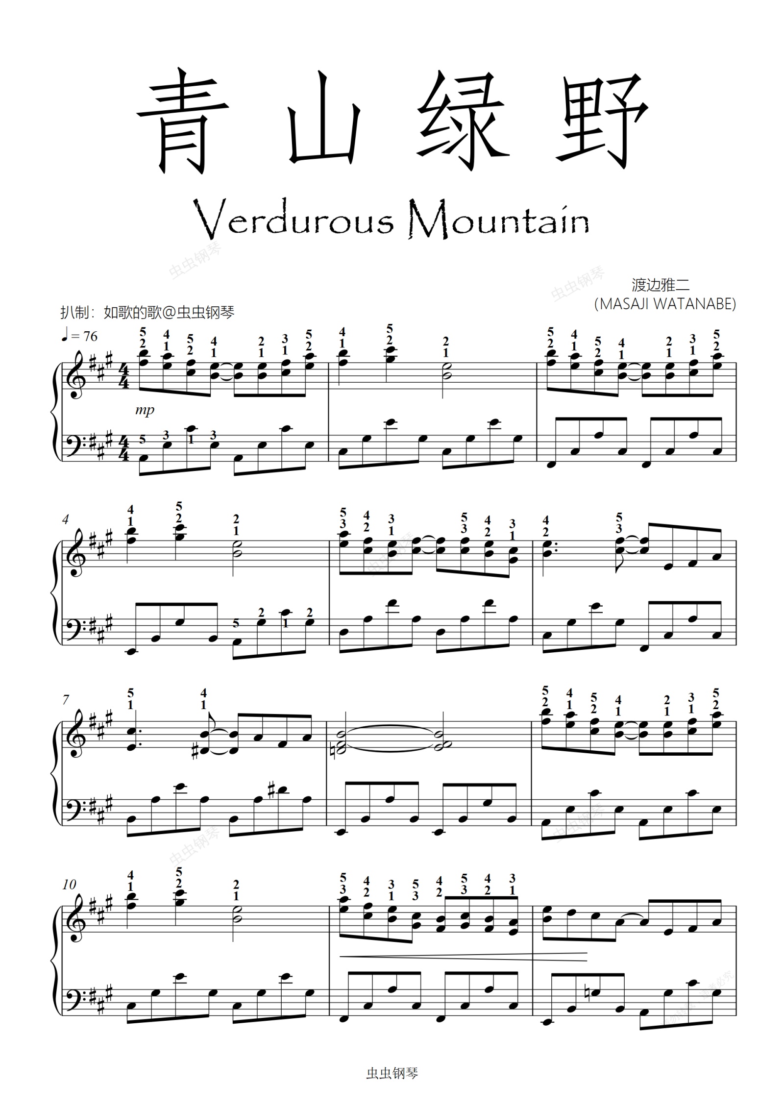 钢琴谱:《青山绿野》古风纯钢琴音乐(月I月II)