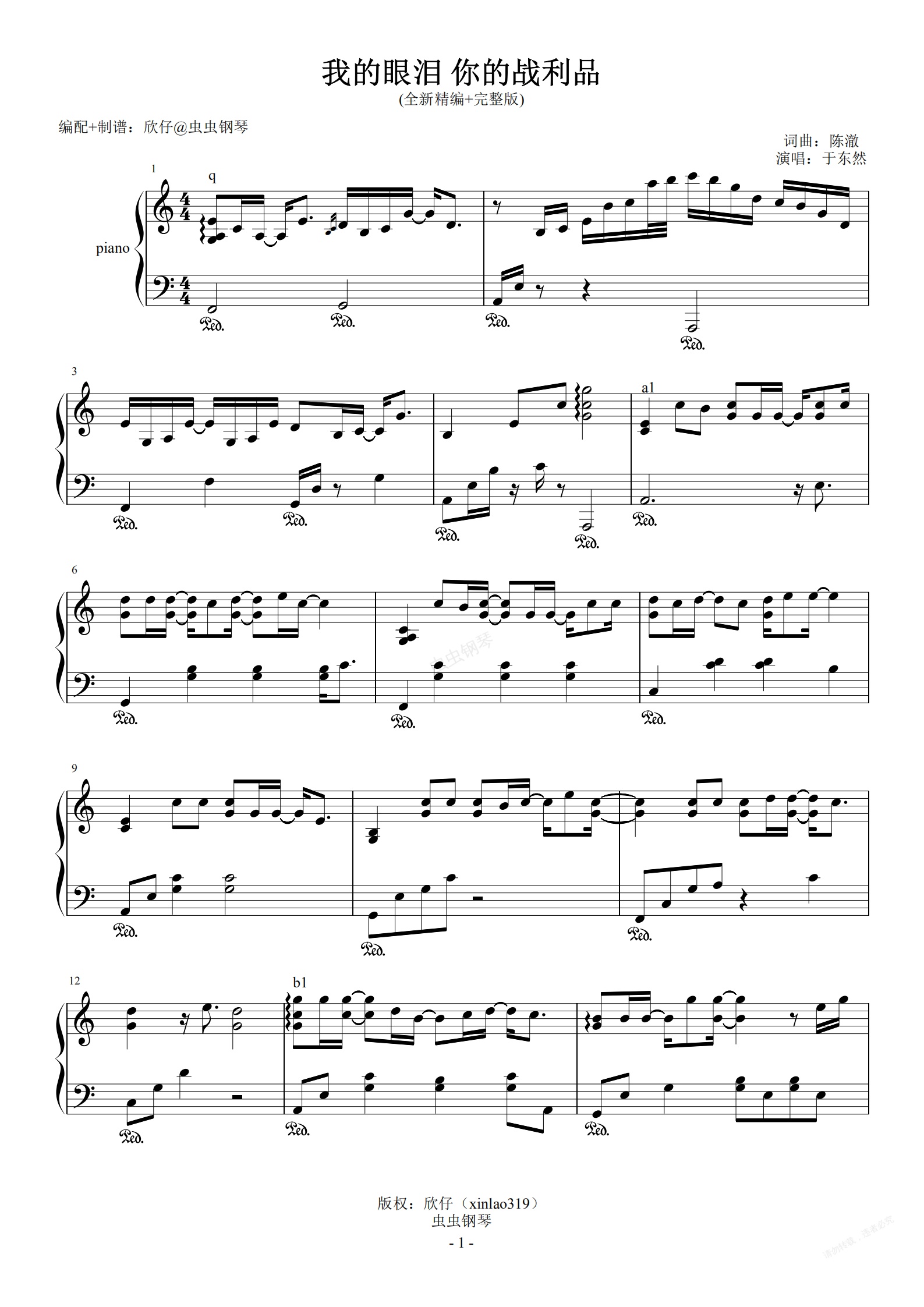 钢琴谱:于东然-C《我的眼泪 你的战利品》(全新精编+完整版)