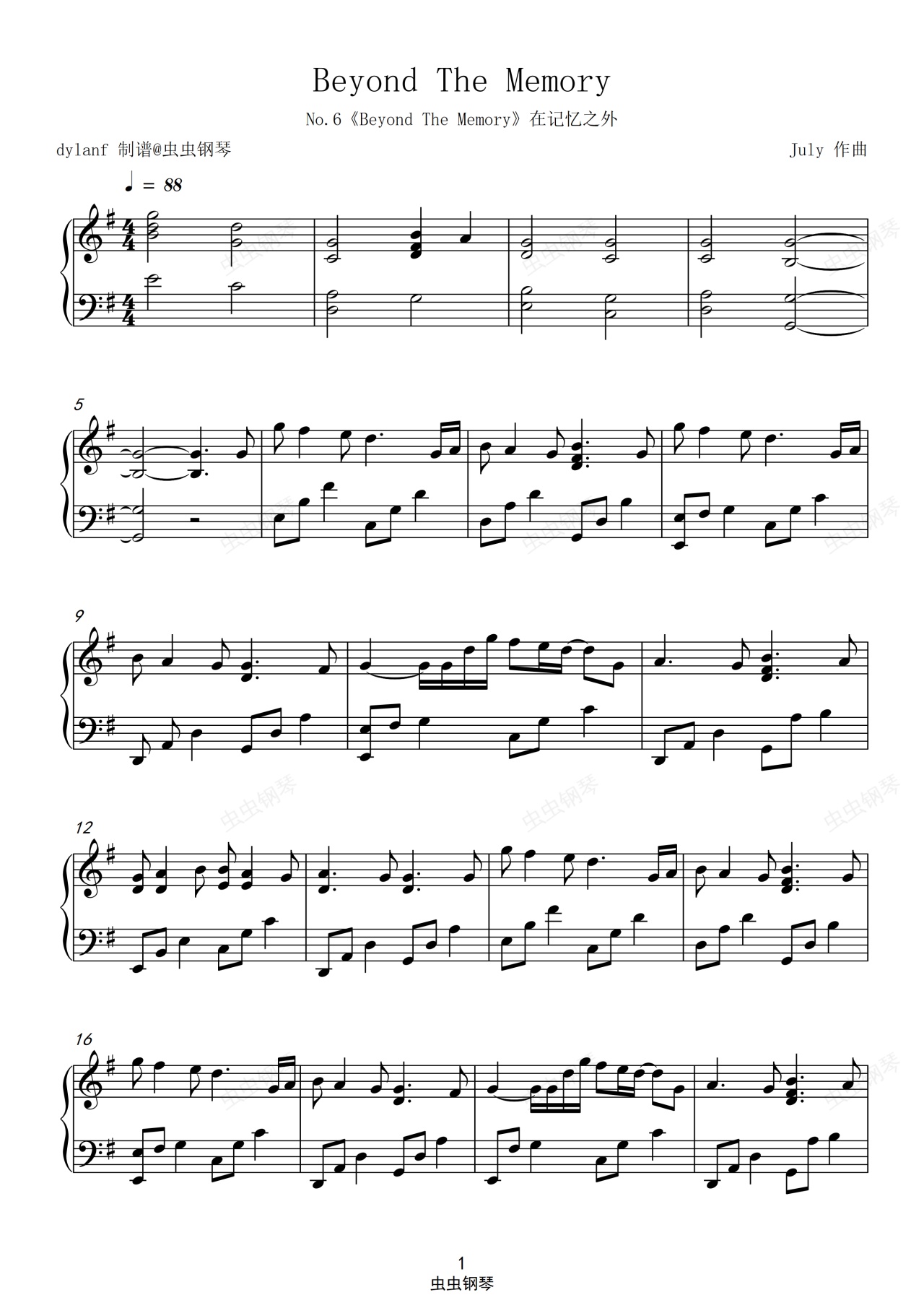 钢琴谱:好听好弹Beyond The Memory《在记忆之外》July