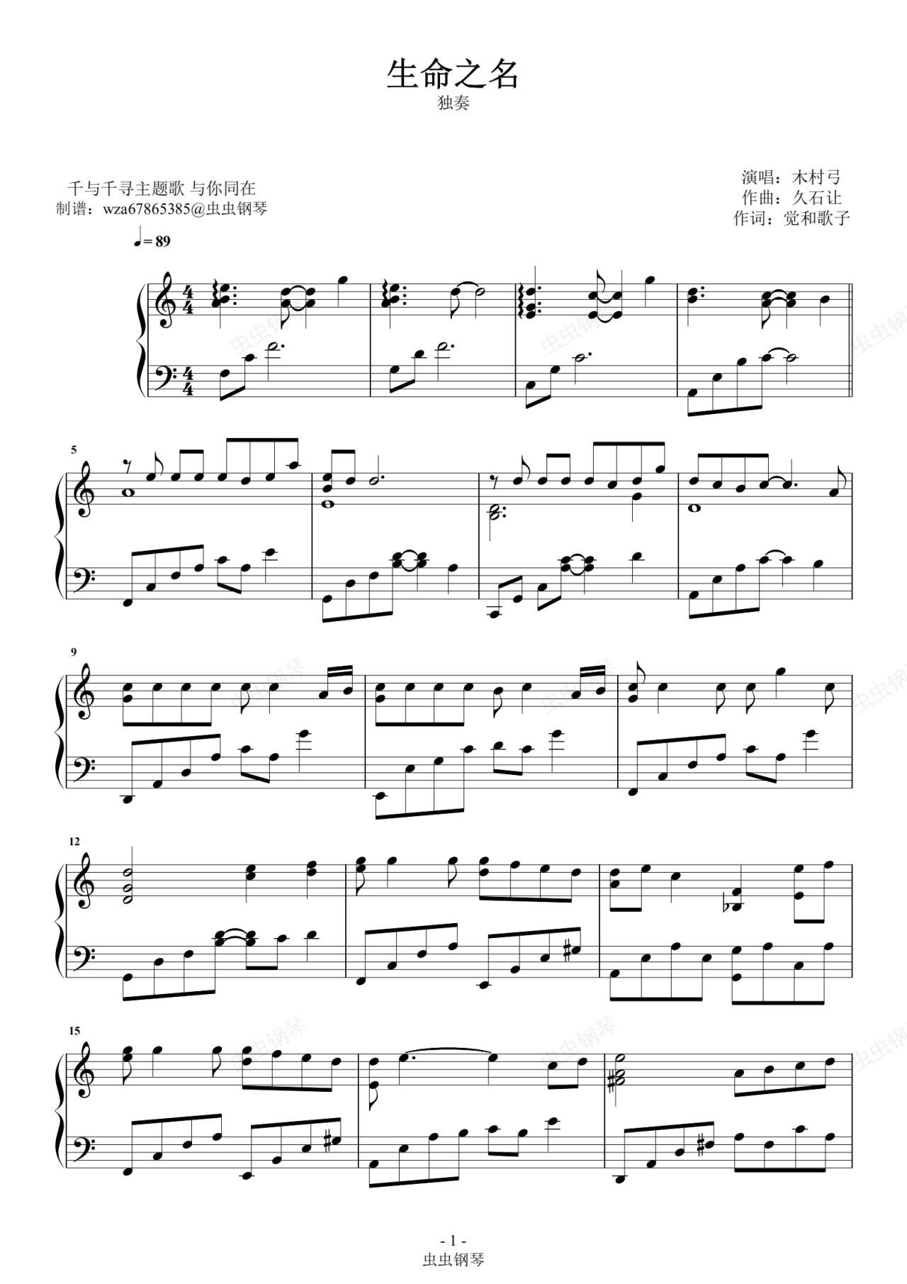 钢琴谱:いのちの名前-生命之名 (独奏)