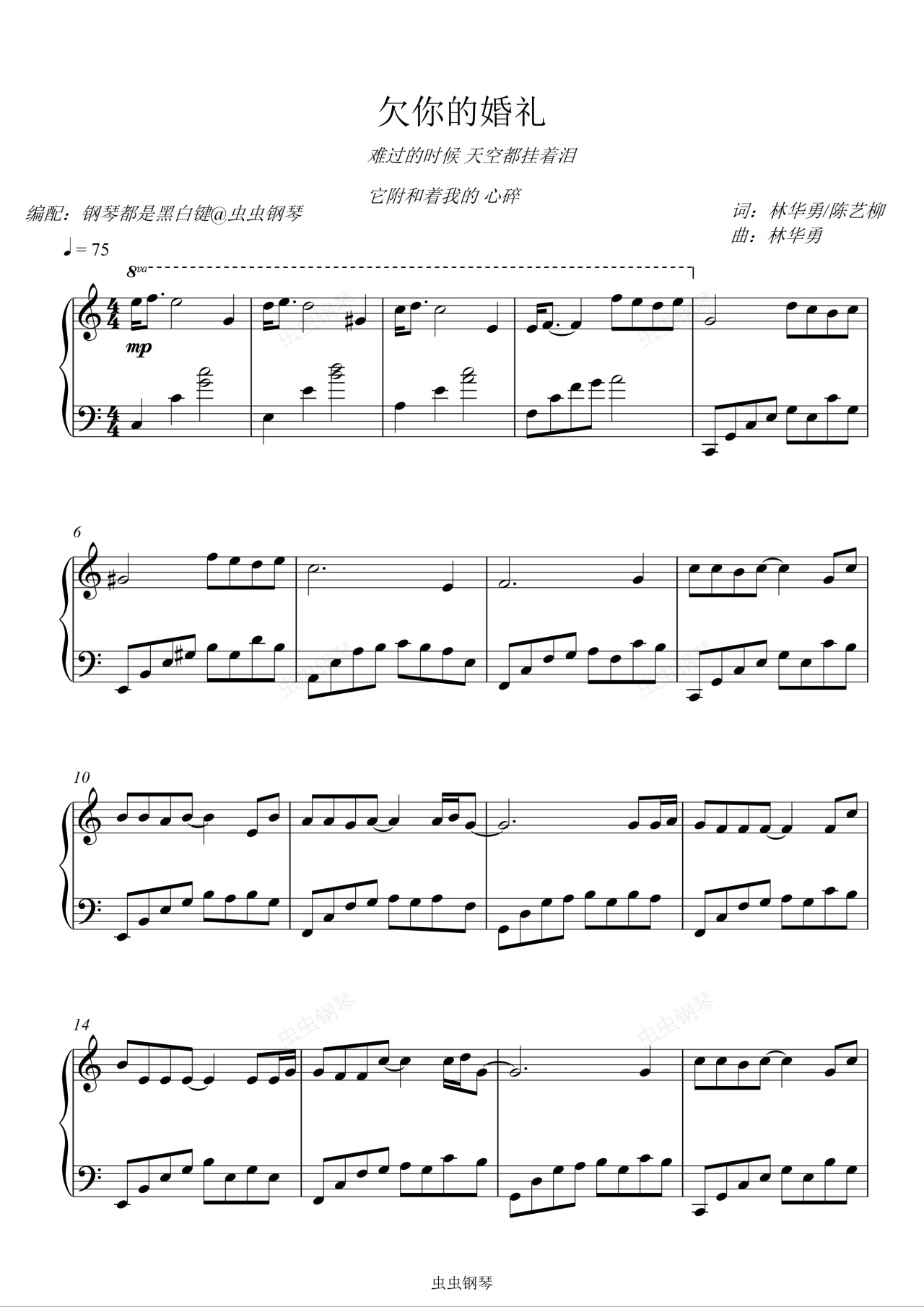 钢琴谱:欠你的婚礼 - 【好听易演奏无转调版】