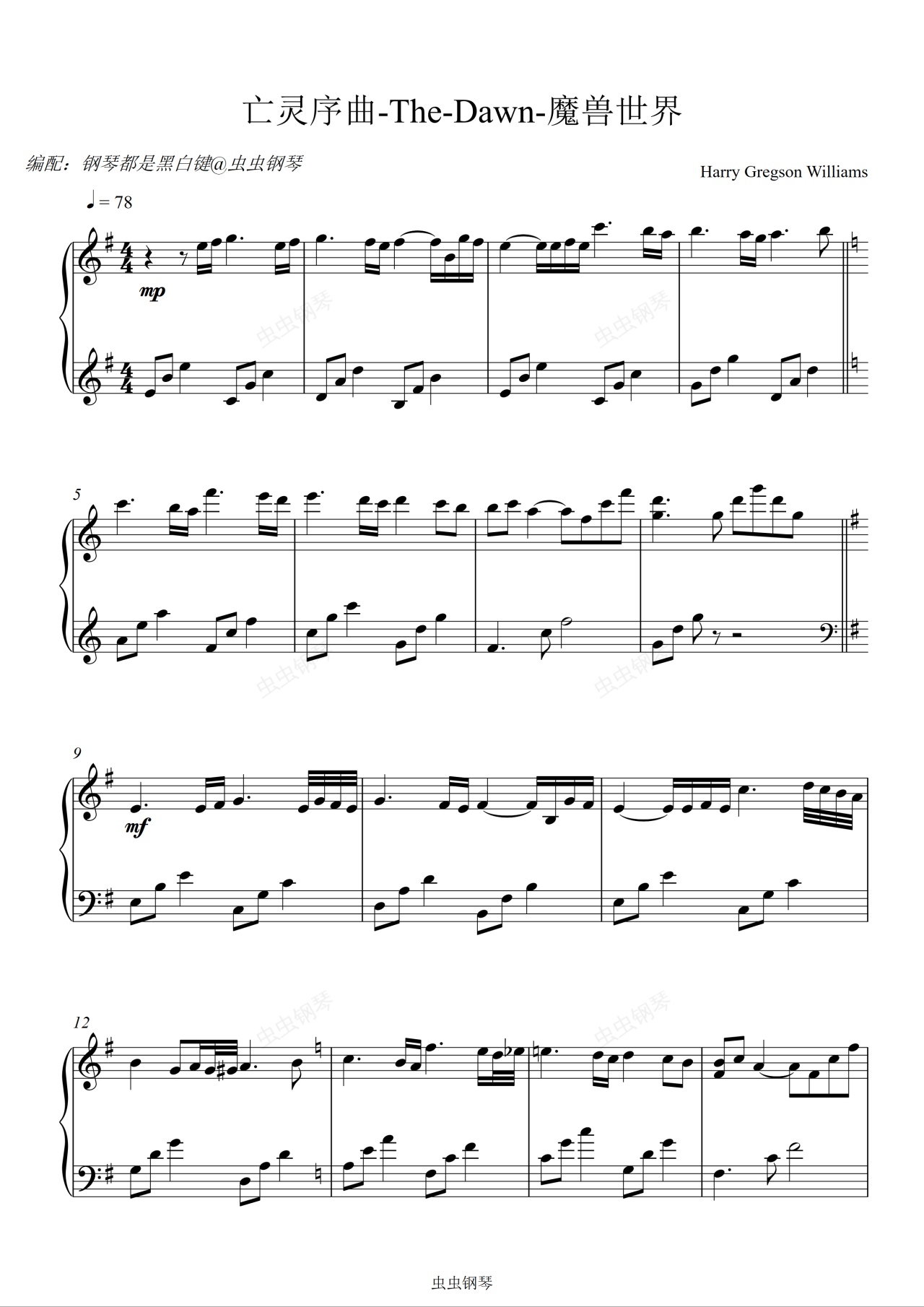 钢琴谱:亡灵序曲-The-Dawn-魔兽世界 【高还原G调好听易弹】