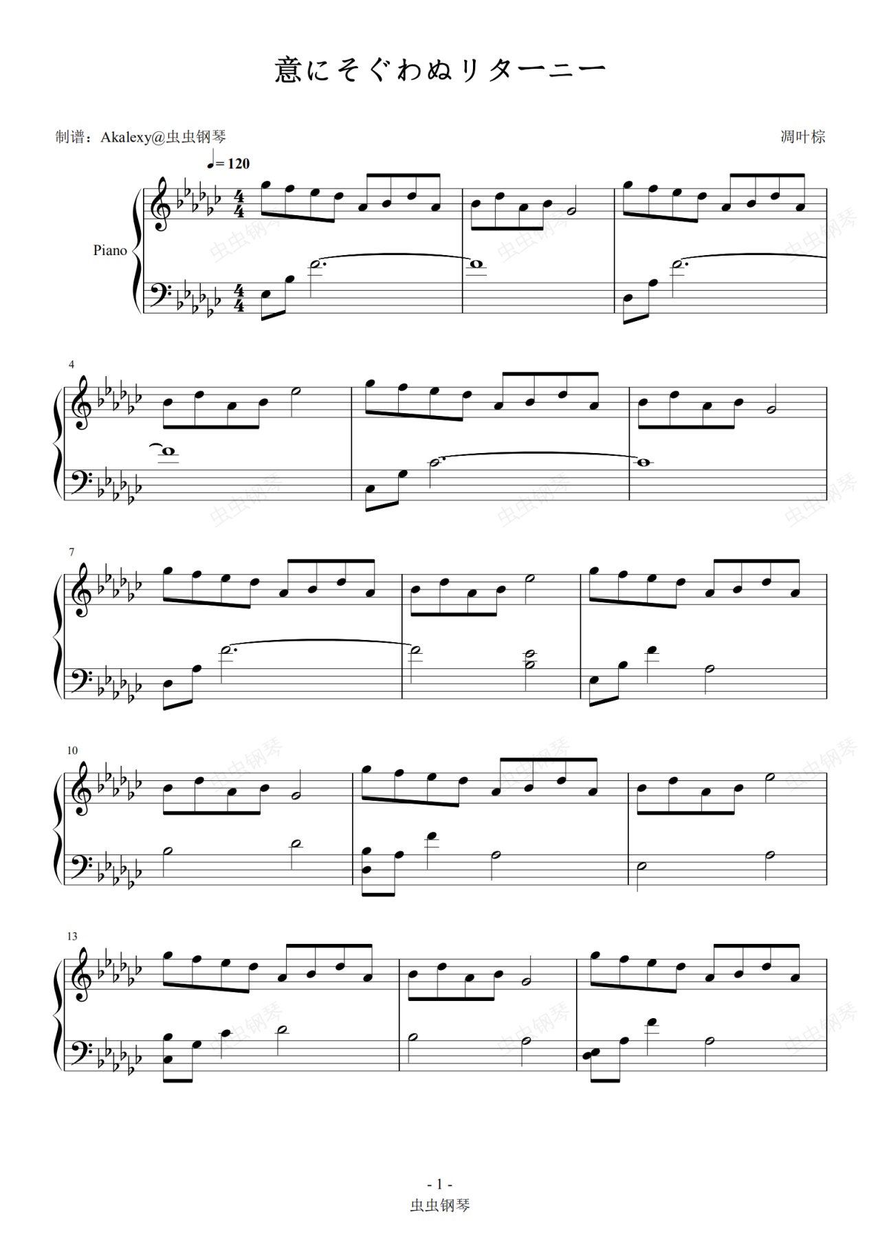 钢琴谱:东方幻想乡《意にそぐわぬリターニー》