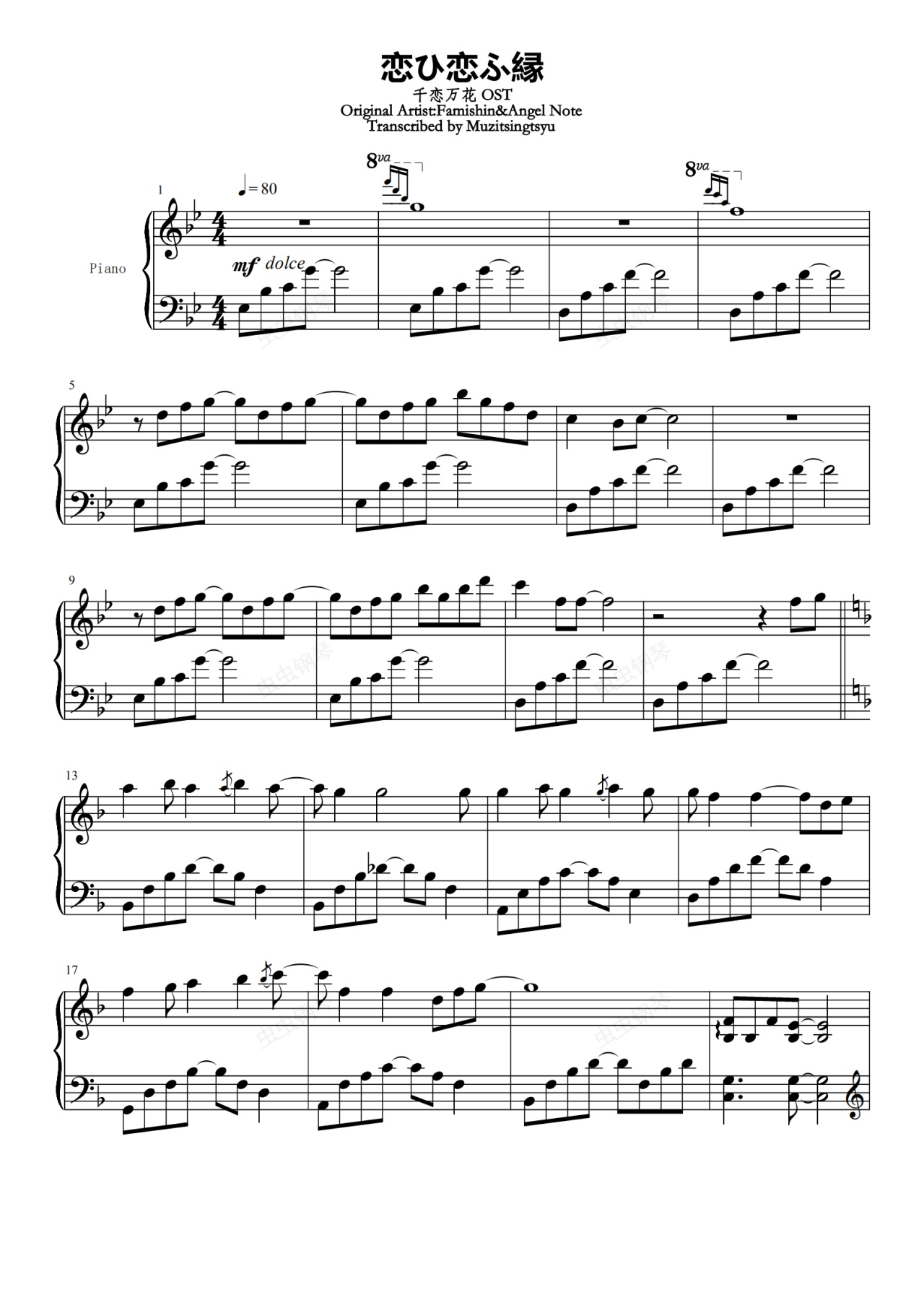 钢琴谱:恋ひ恋ふ縁(Piano Ver.)钢琴谱