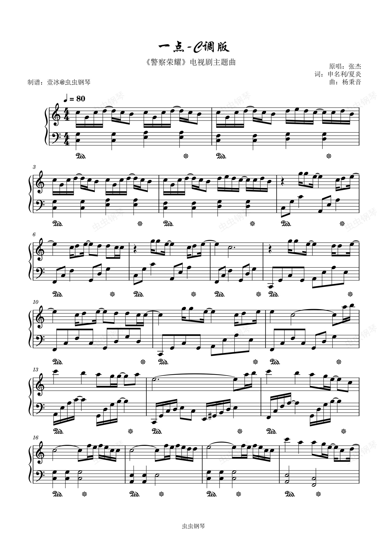 钢琴谱:一点//《警察荣誉》电视剧主题曲-C调版