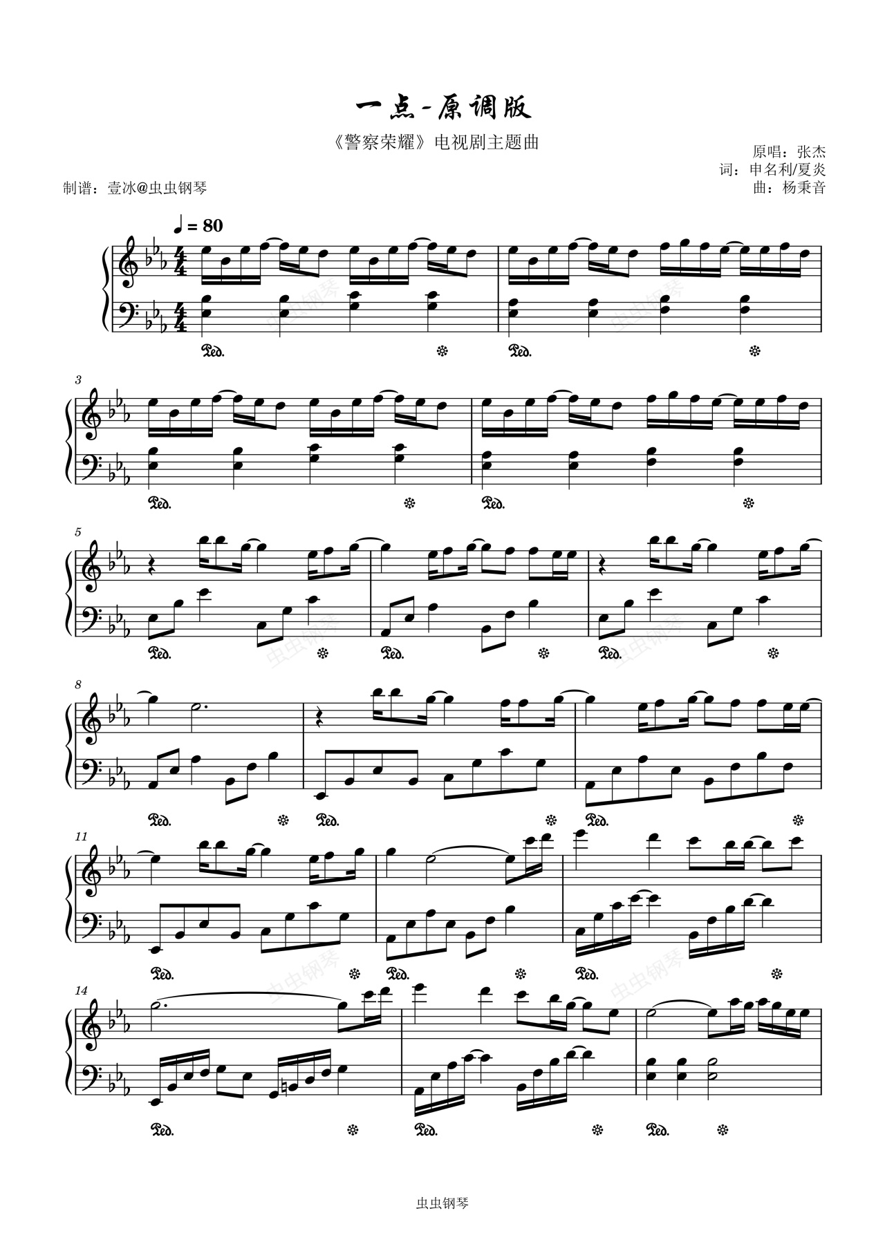 钢琴谱:一点//《警察荣誉》电视剧主题曲-原调版