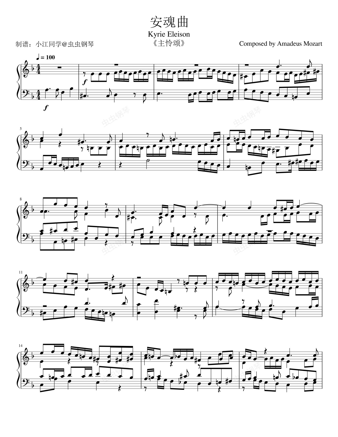 钢琴谱:主怜颂(Kyrie Eleison)安魂曲