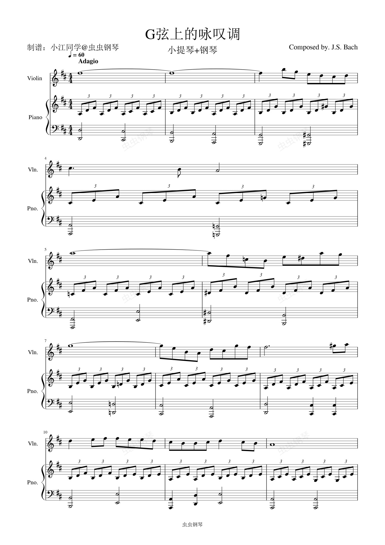 钢琴谱:G弦上的咏叹调 小提琴+钢琴