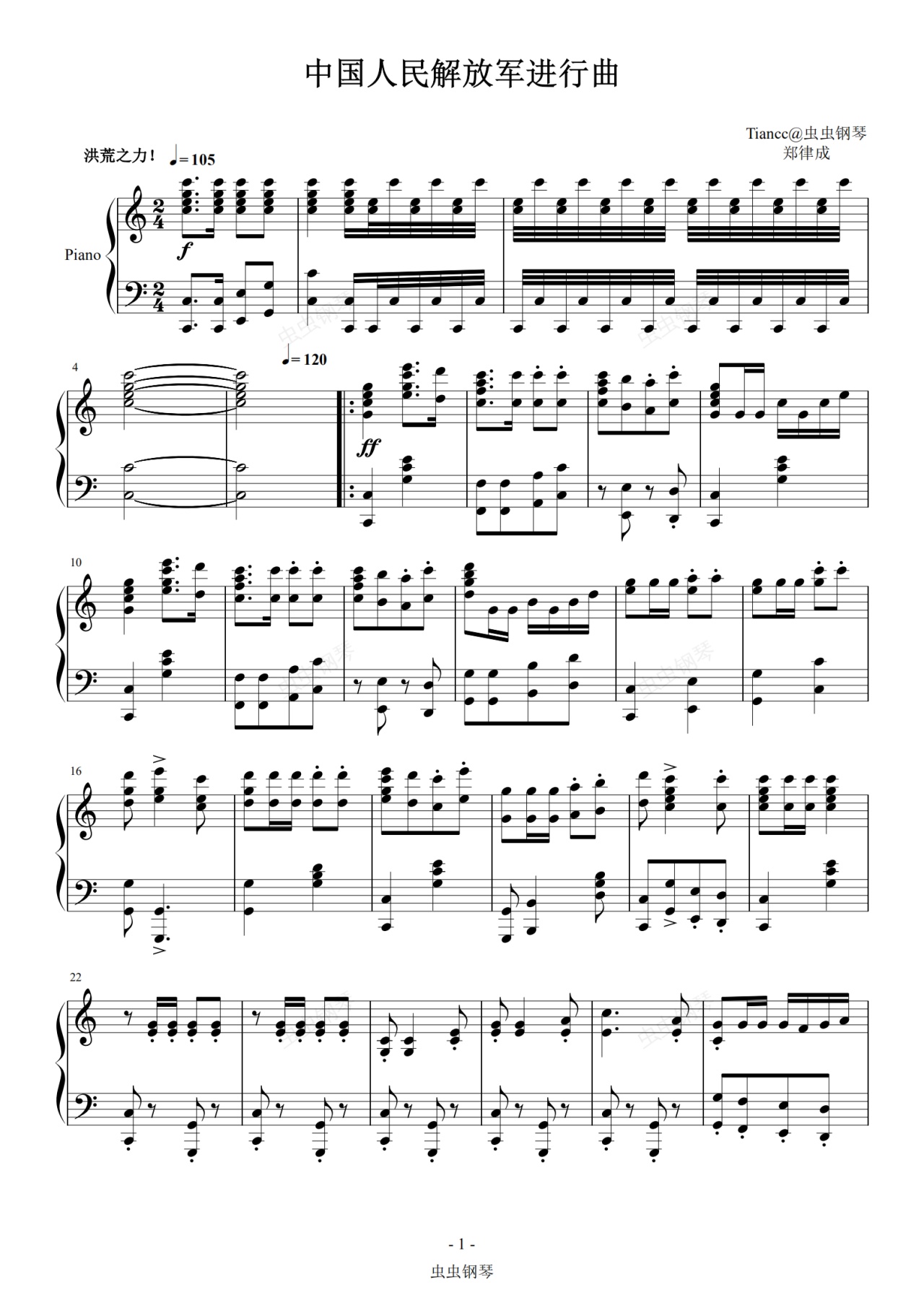 钢琴谱:《中国人民解放军进行曲》大气恢宏演奏版,拿出你的洪荒之力!