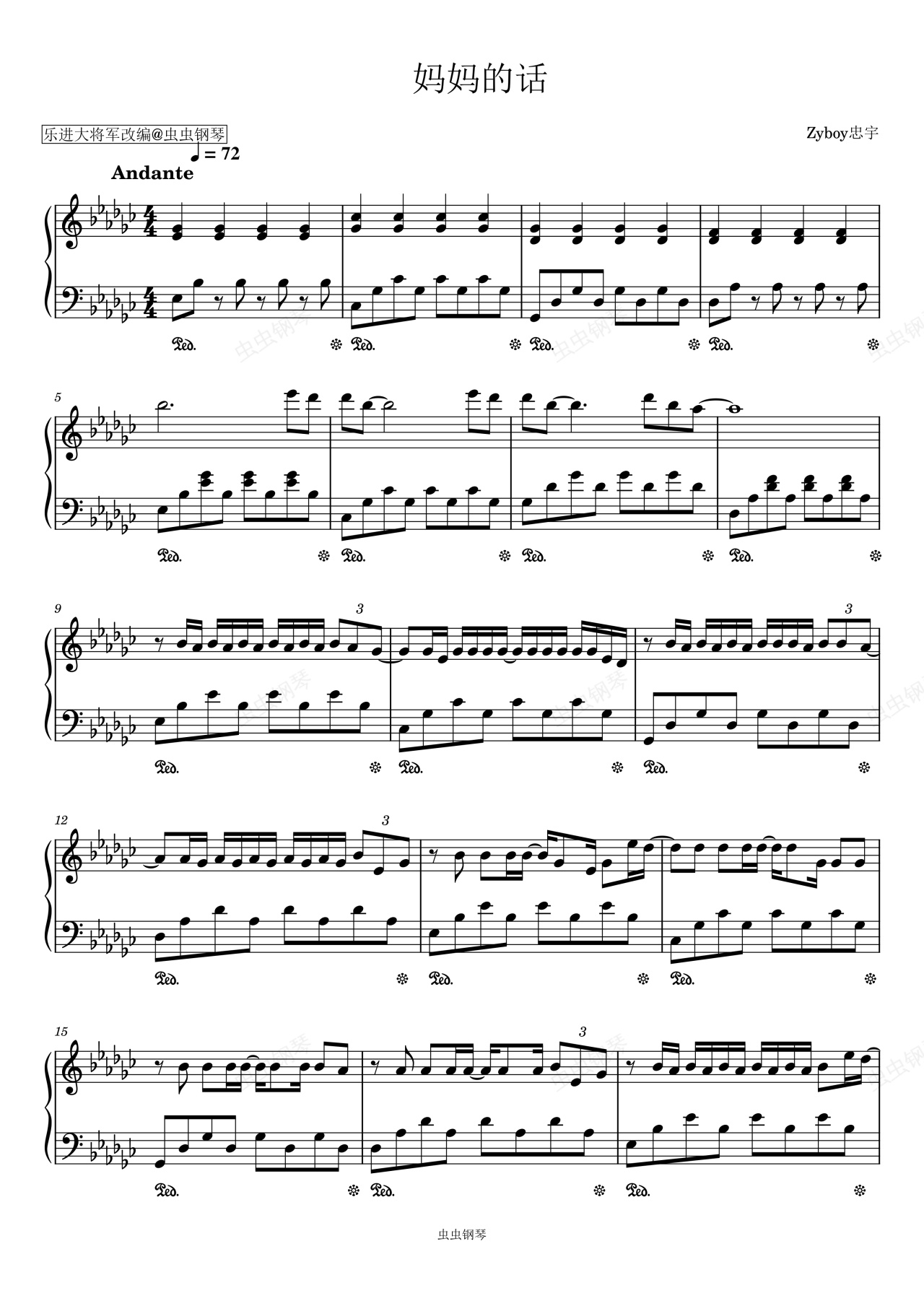 钢琴谱:Zyboy忠宇《妈妈的话》 原调