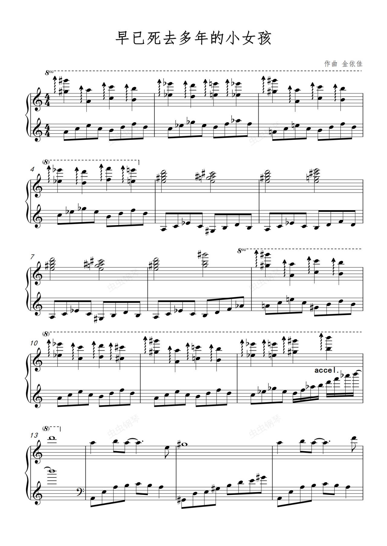 钢琴谱:金依佳《早已死去多年的小女孩》【暗系列】