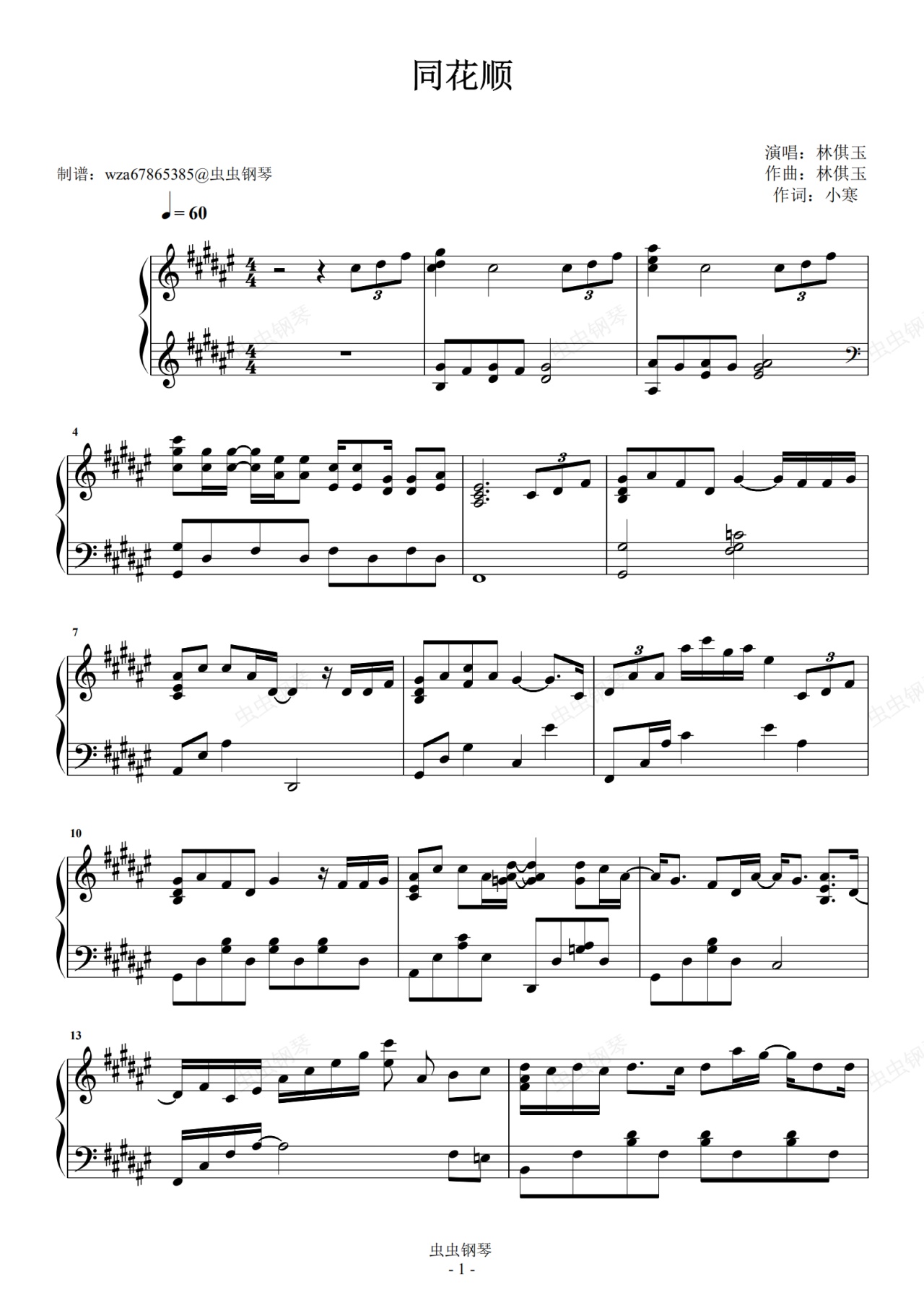 钢琴谱:同花顺