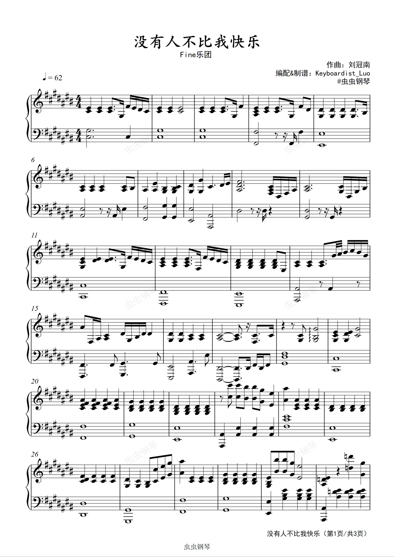 钢琴谱:《没有人不比我快乐》钢琴谱 原调完美还原