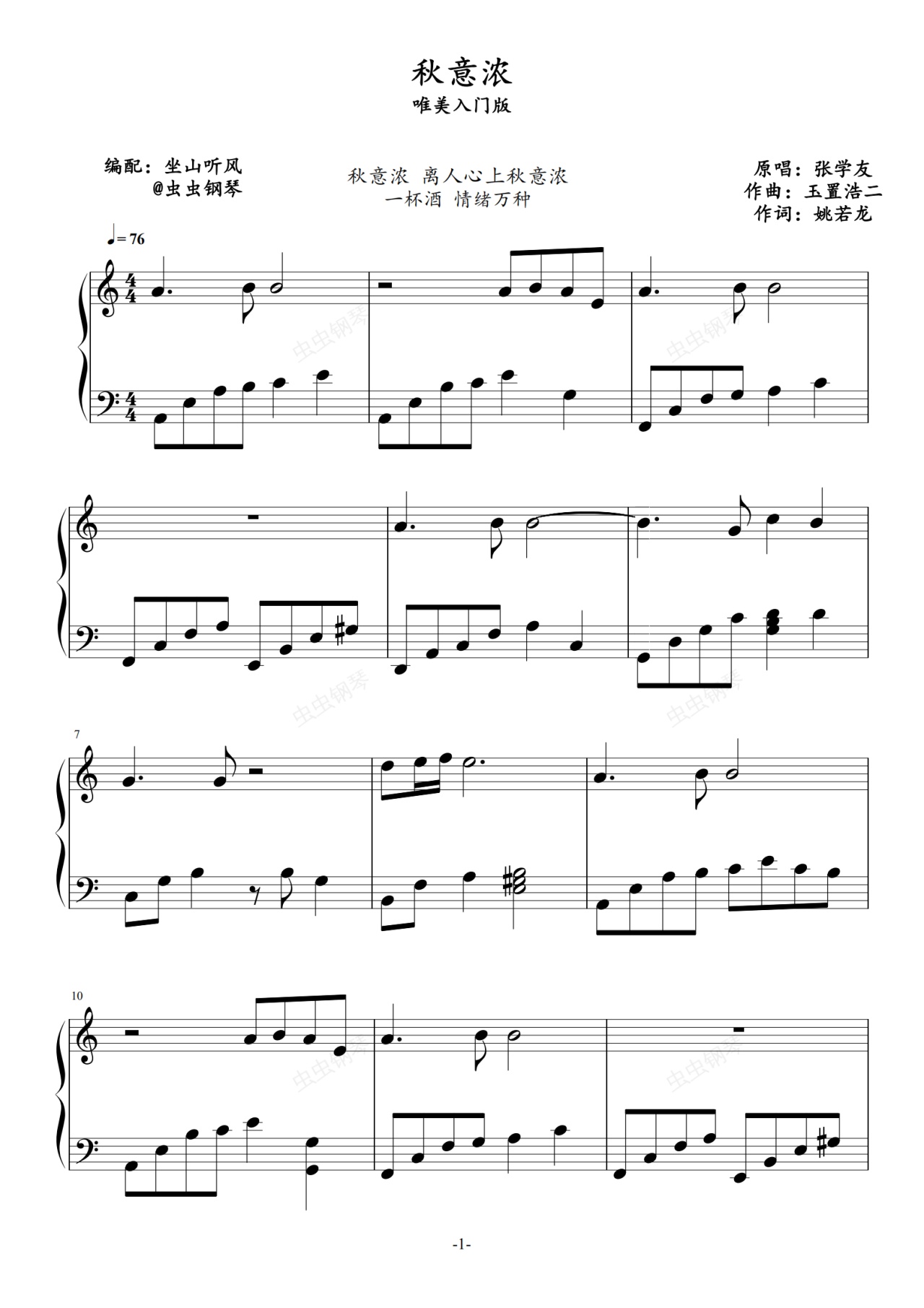 钢琴谱:秋意浓——唯美入门版