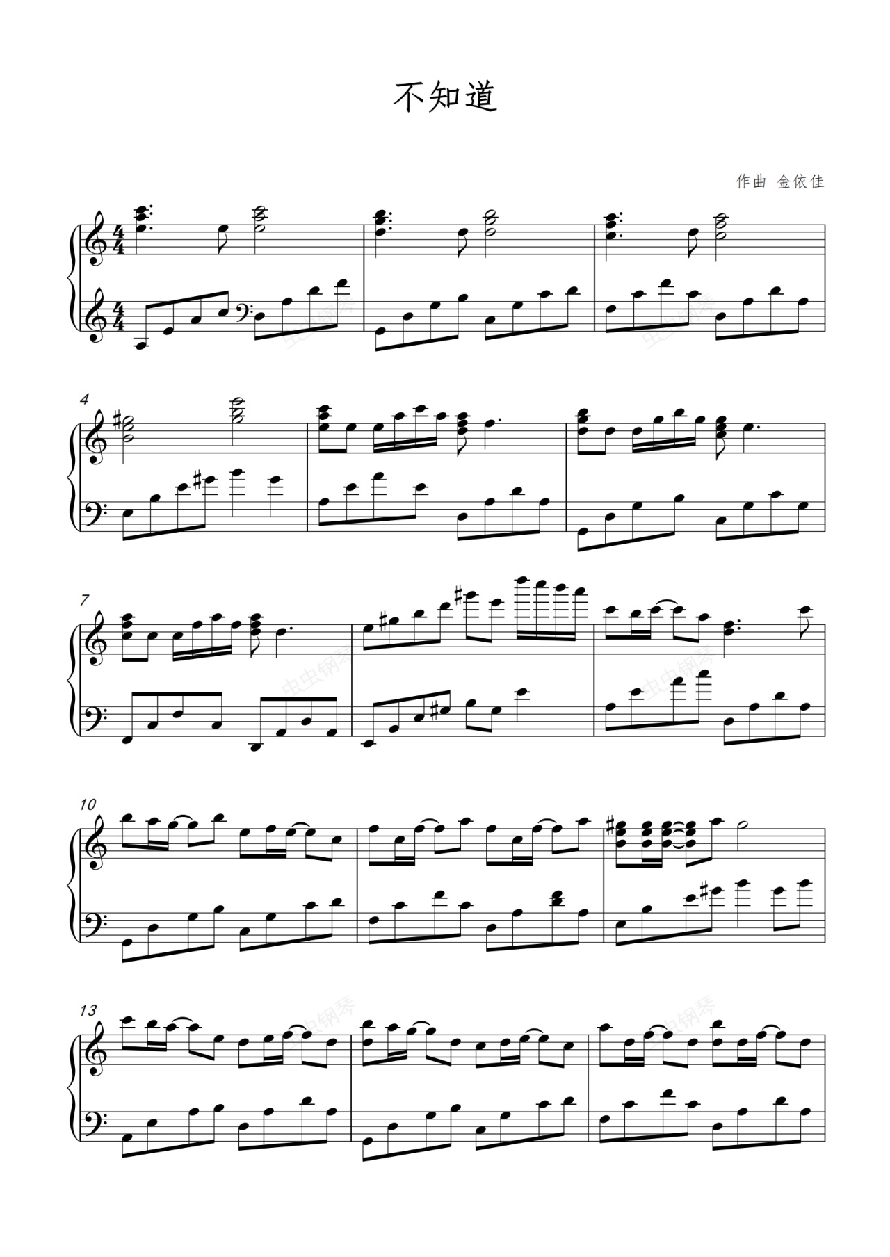 钢琴谱:《不知道》