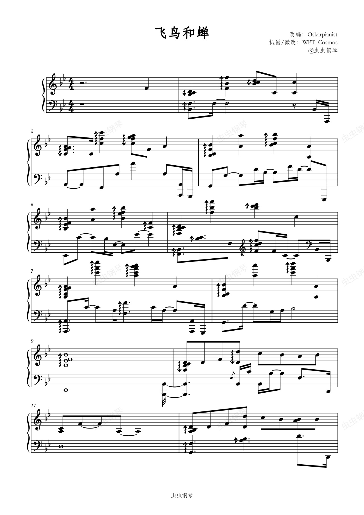 钢琴谱:飞鸟和蝉--Oskarpianist(罗曼耶卓)