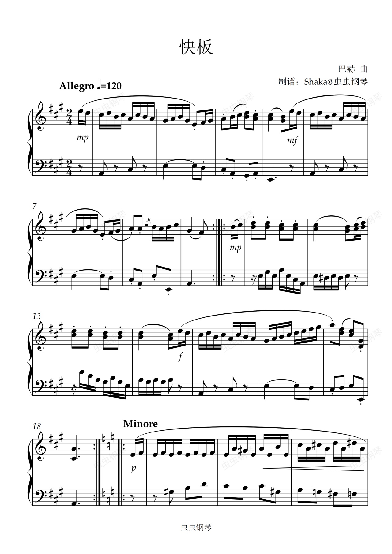 钢琴谱:快板 巴赫 上海音乐学院2020版5级考级曲目