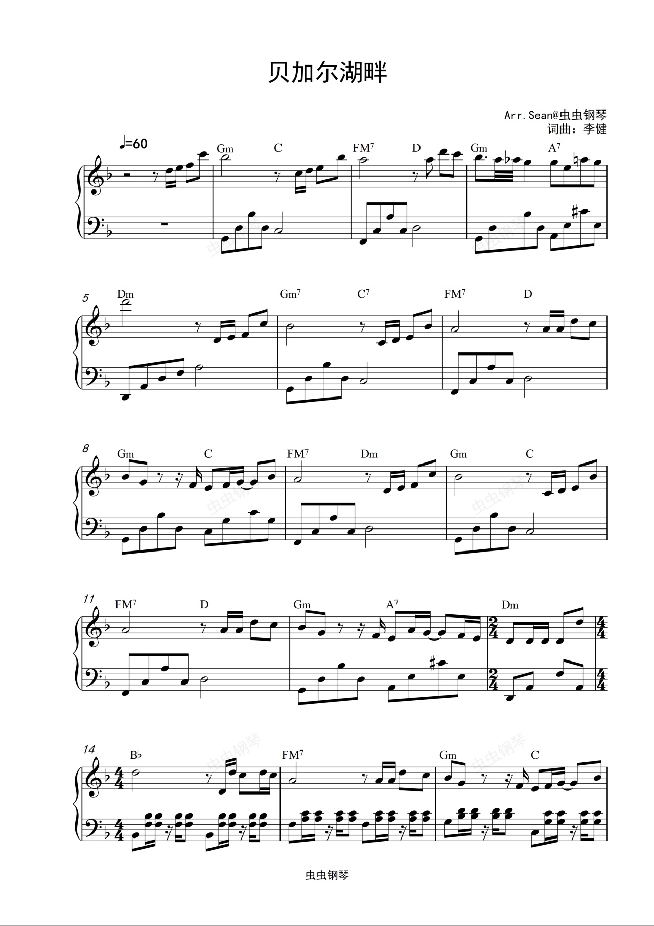 钢琴谱:《贝加尔湖畔》简单版