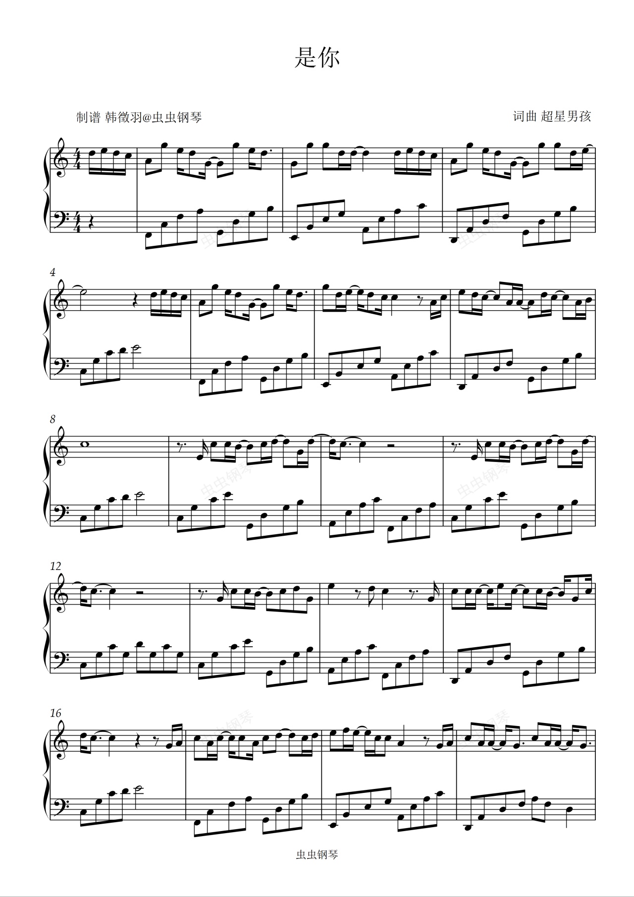 钢琴谱:是你 就是南方凯
