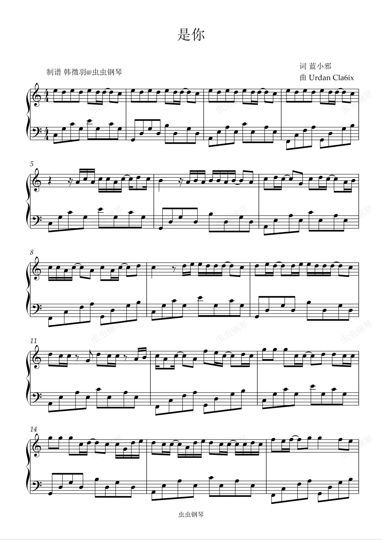 钢琴谱:是你 TFBOYS
