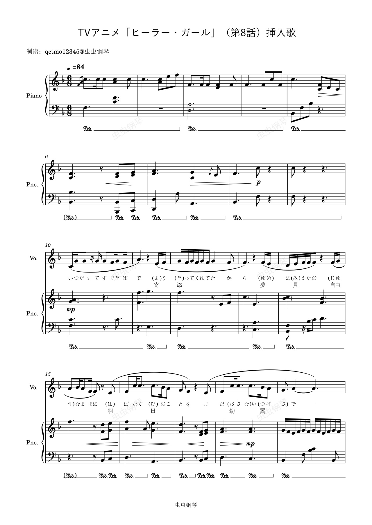 钢琴谱:Healer Girl/歌愈少女 第八话插入曲 ヒーラー・ガール