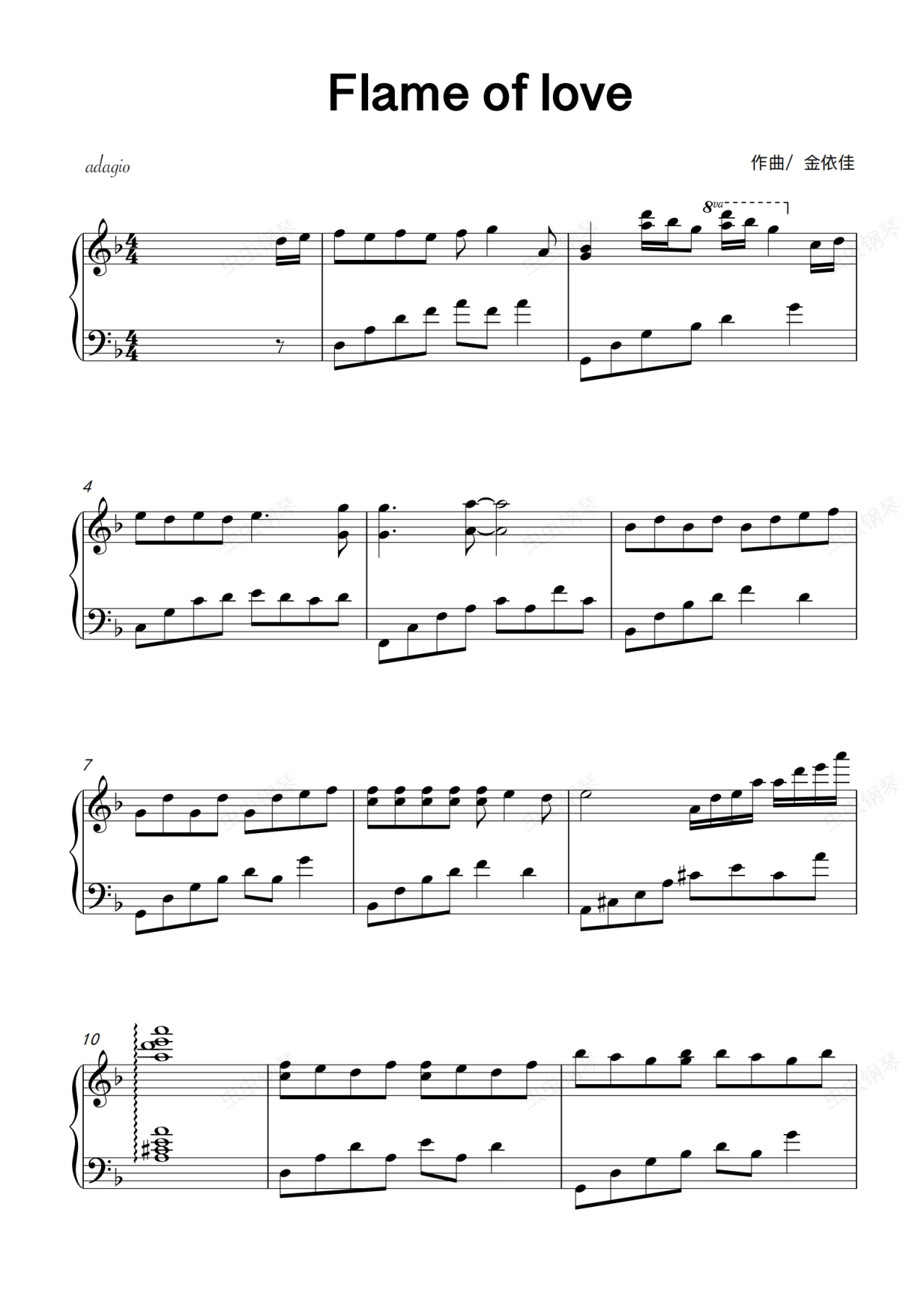 钢琴谱:flame is love 【抒情简易版】