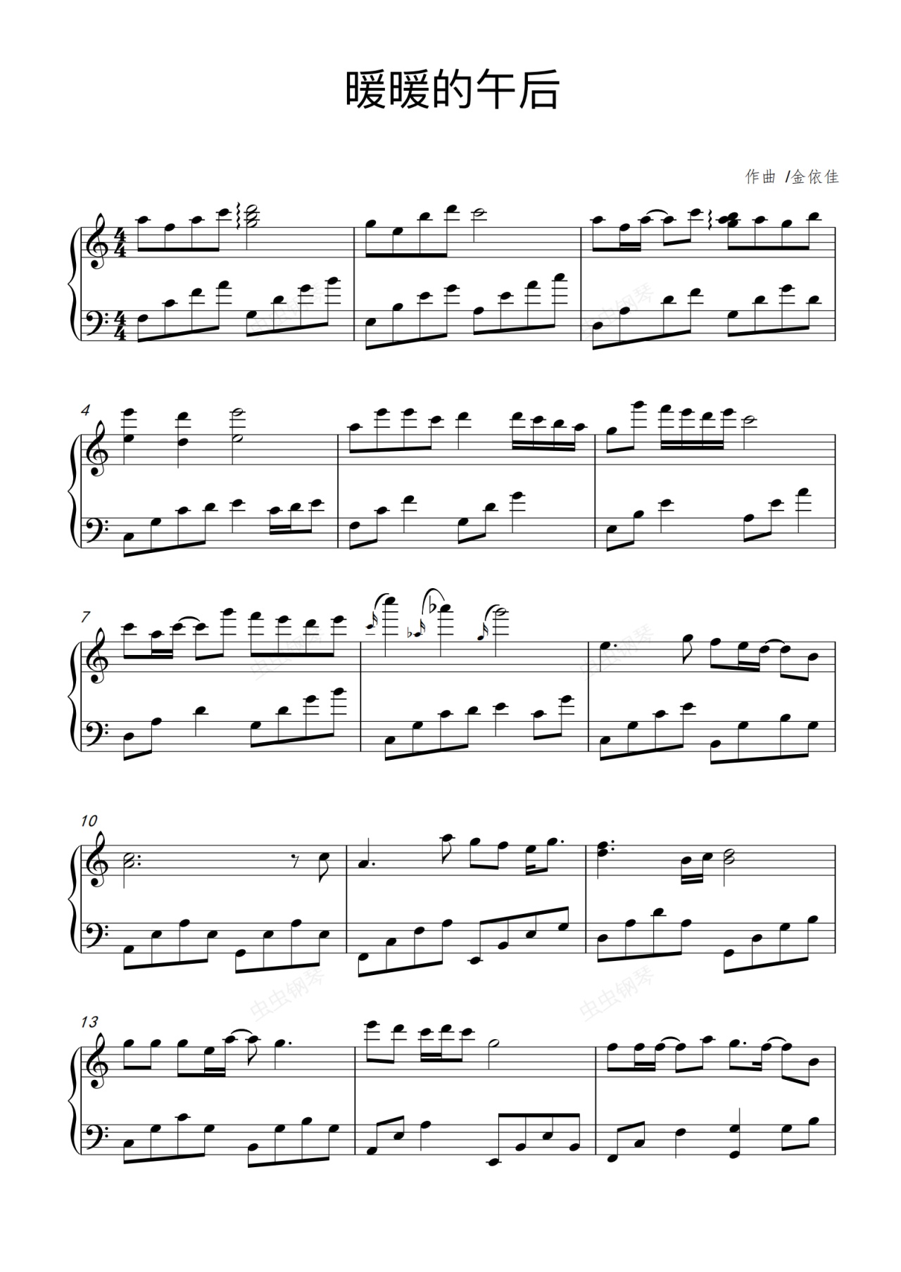 钢琴谱:暖暖的午后【C大調愉悦简易版】