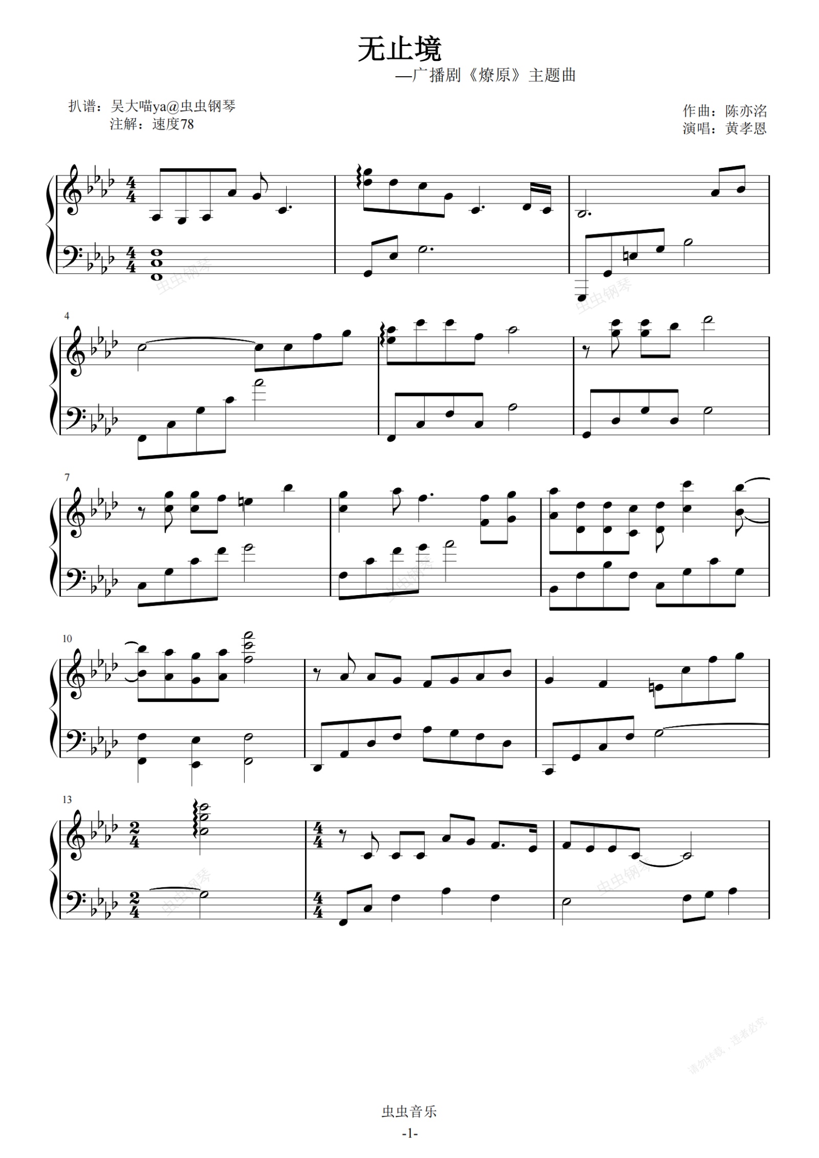 钢琴谱:《无止境》—广播剧《燎原》主题曲
